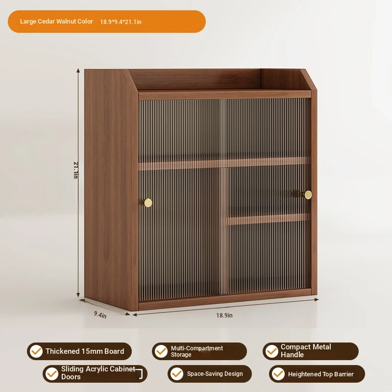 [Hot three-layer ☆ Double sliding door] Big Cedar walnut color 18.90in*9.45in*21.26in-thickened 0.59in