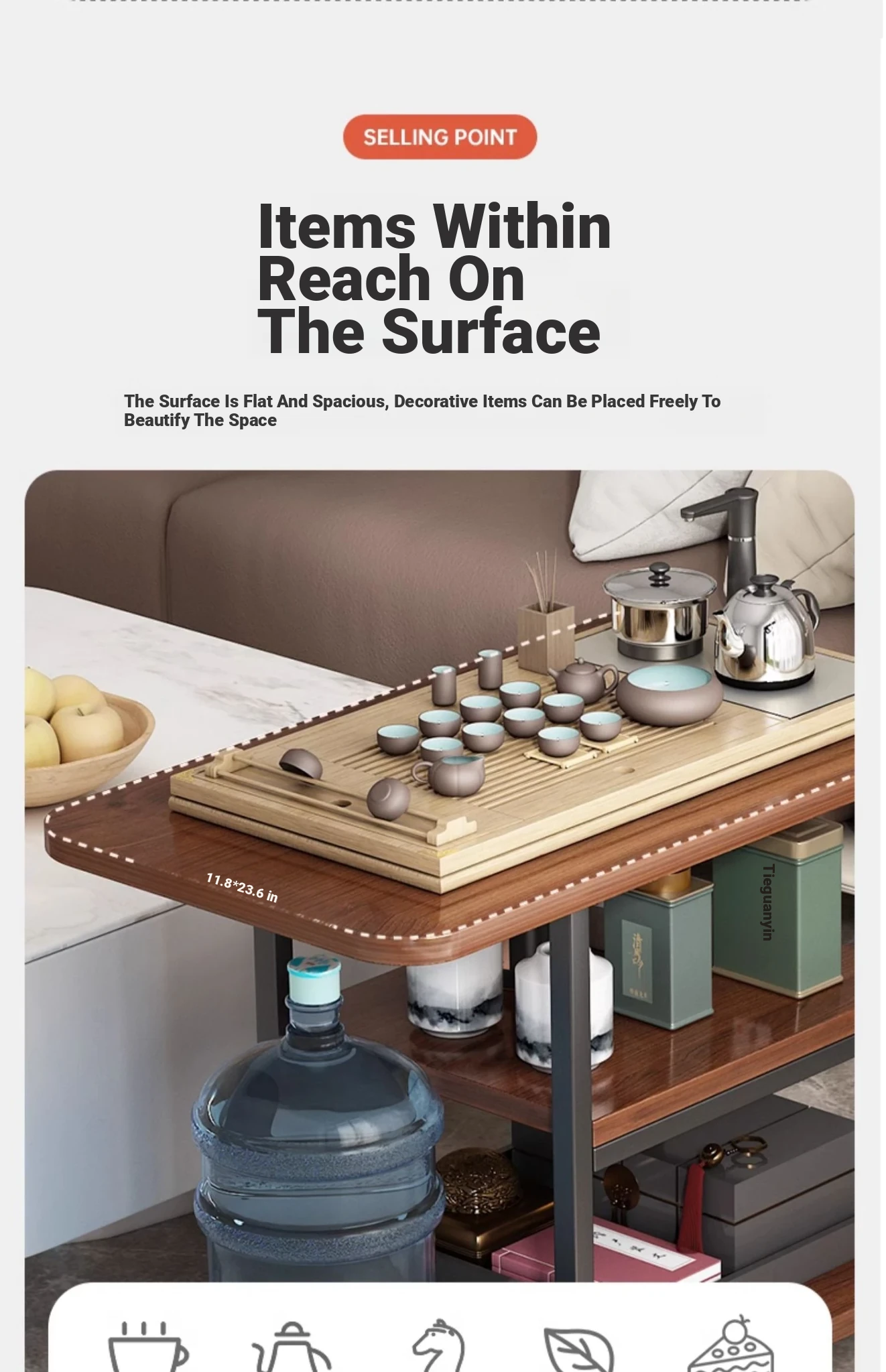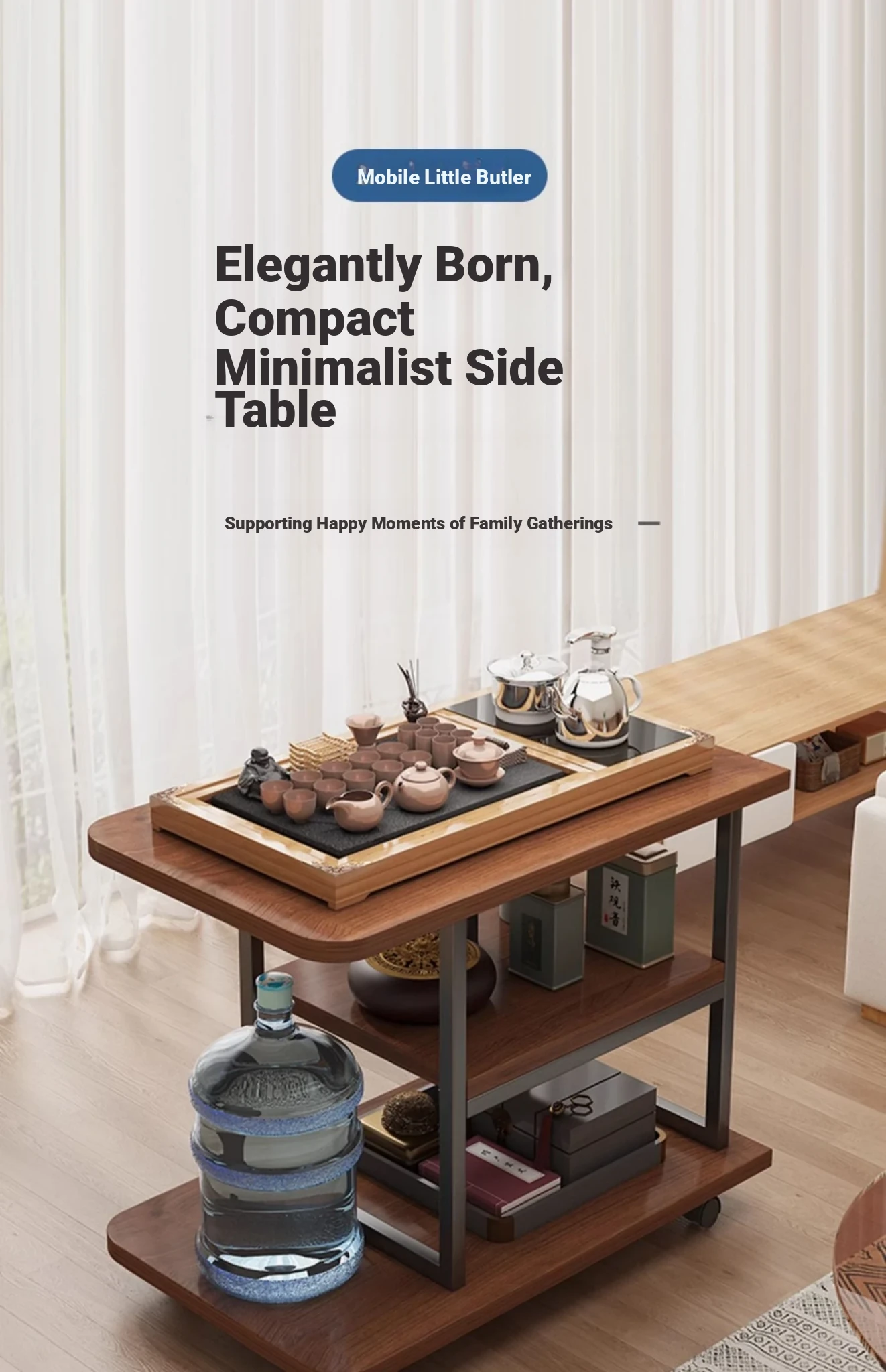 Compact Tea Table for Home - Versatile Tea Station and Side Cabinet for Living Room or Balcony, Perfect Small Coffee Table for Sofa or Side Use.