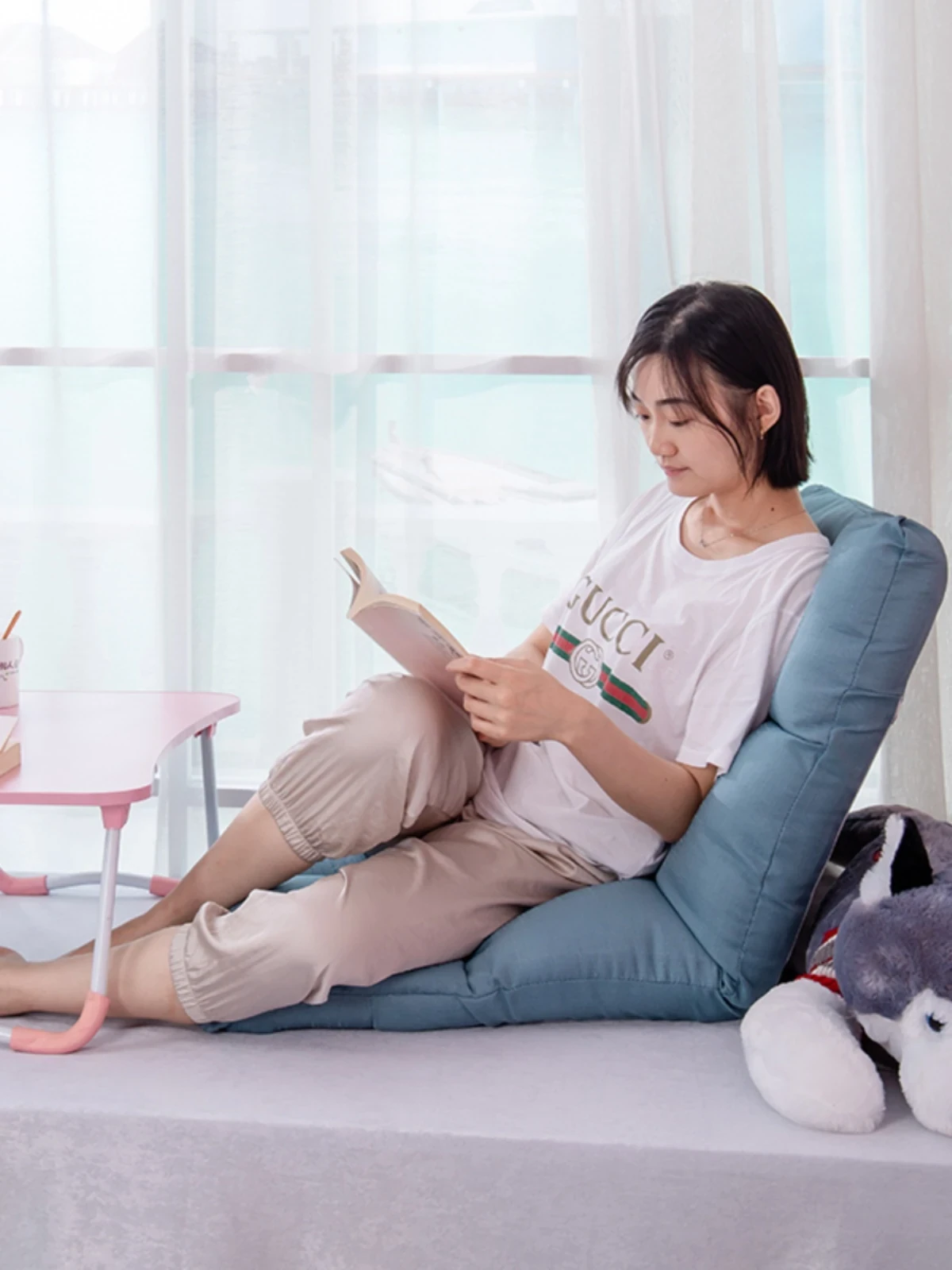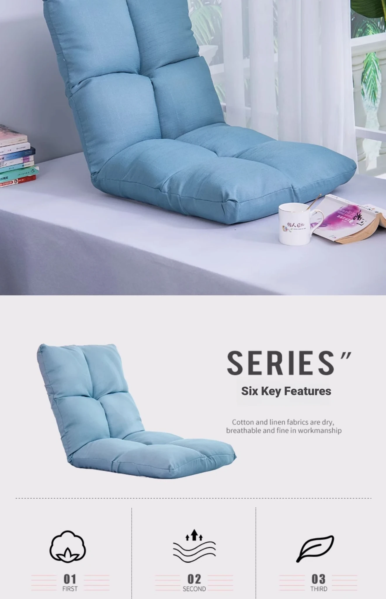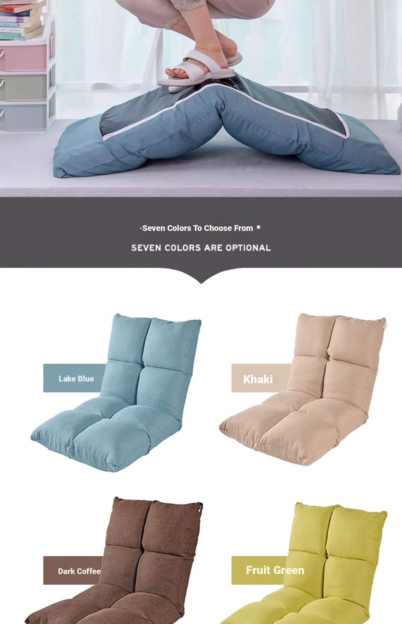 Cozy Folding Lazy Sofa Bed for One – Perfect for Balconies and Bay Windows, with Backrest and Cushioned Mat for Ultimate Comfort and Relaxation!