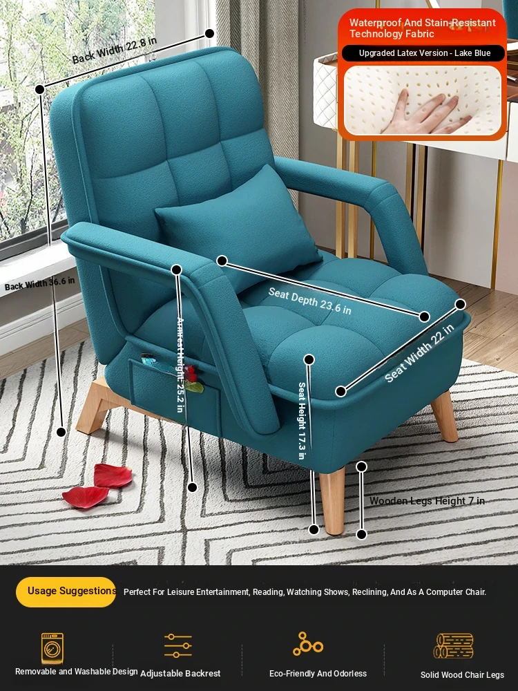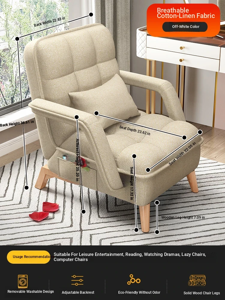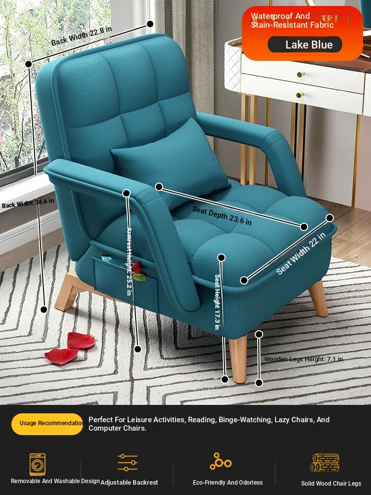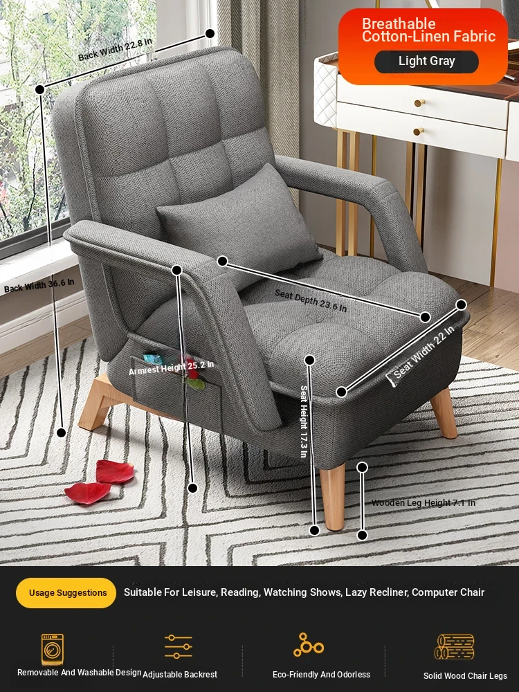 Cozy Lazy Chair - Versatile Single Sofa for Relaxing, Napping, and Lounging. Perfect for Bedroom, Living Room, or Balcony. Foldable Recliner for Comfortable Afternoon Rest.