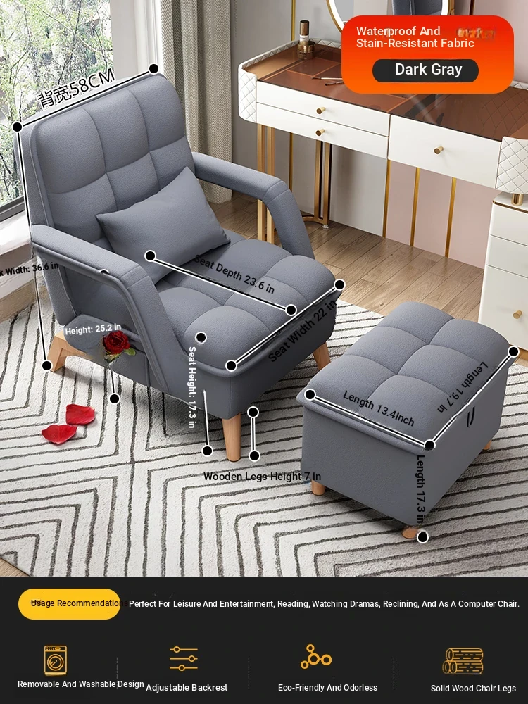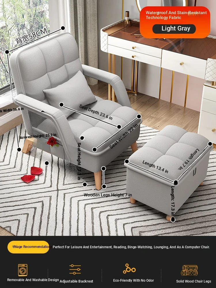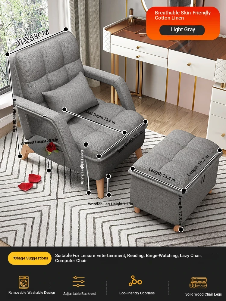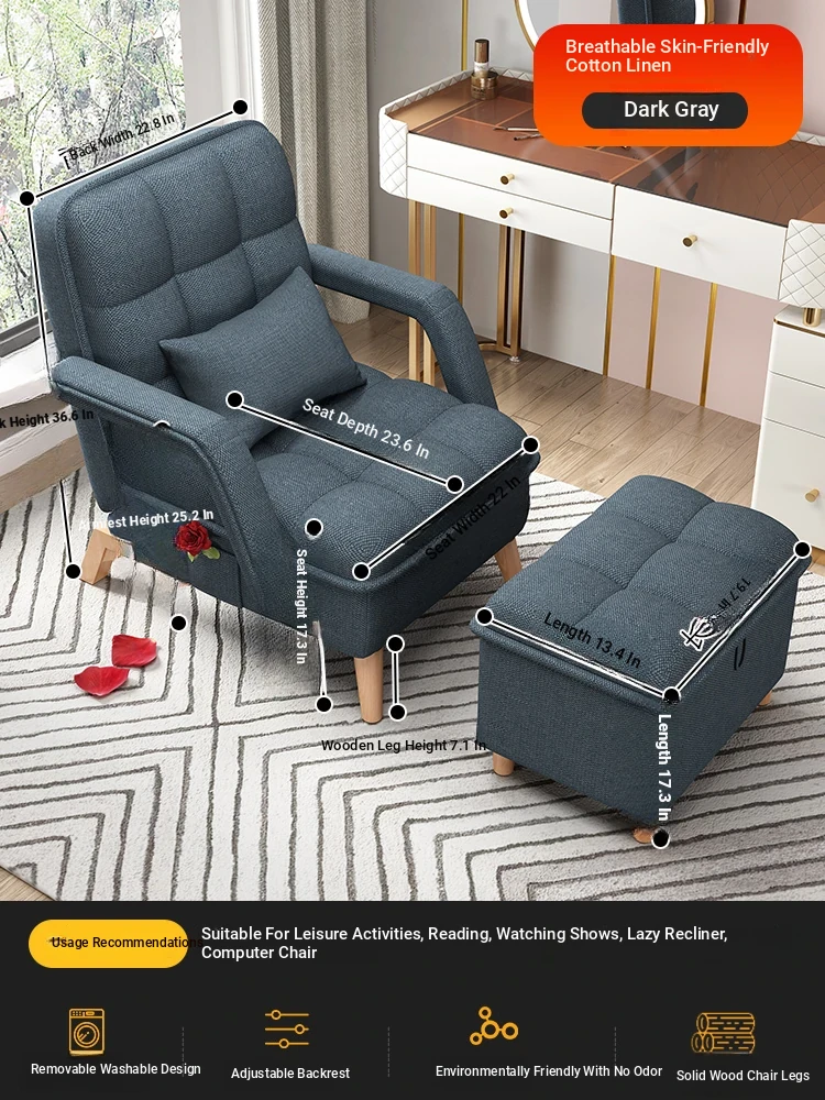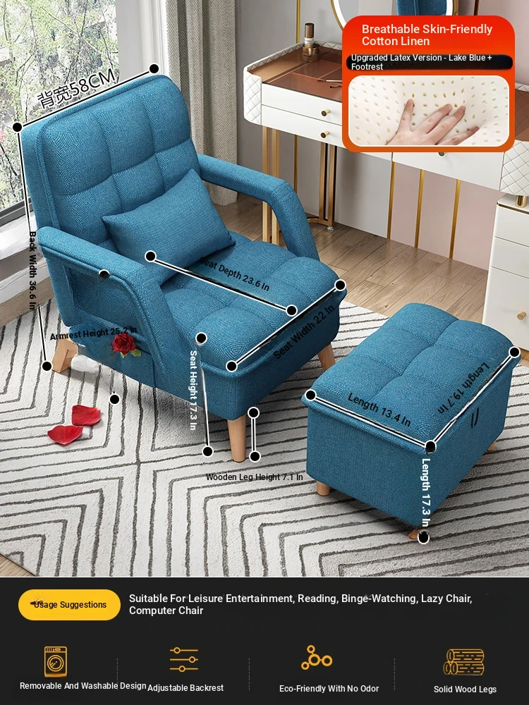 Cozy Lazy Chair - Versatile Single Sofa for Relaxing, Napping, and Lounging. Perfect for Bedroom, Living Room, or Balcony. Foldable Recliner for Comfortable Afternoon Rest.