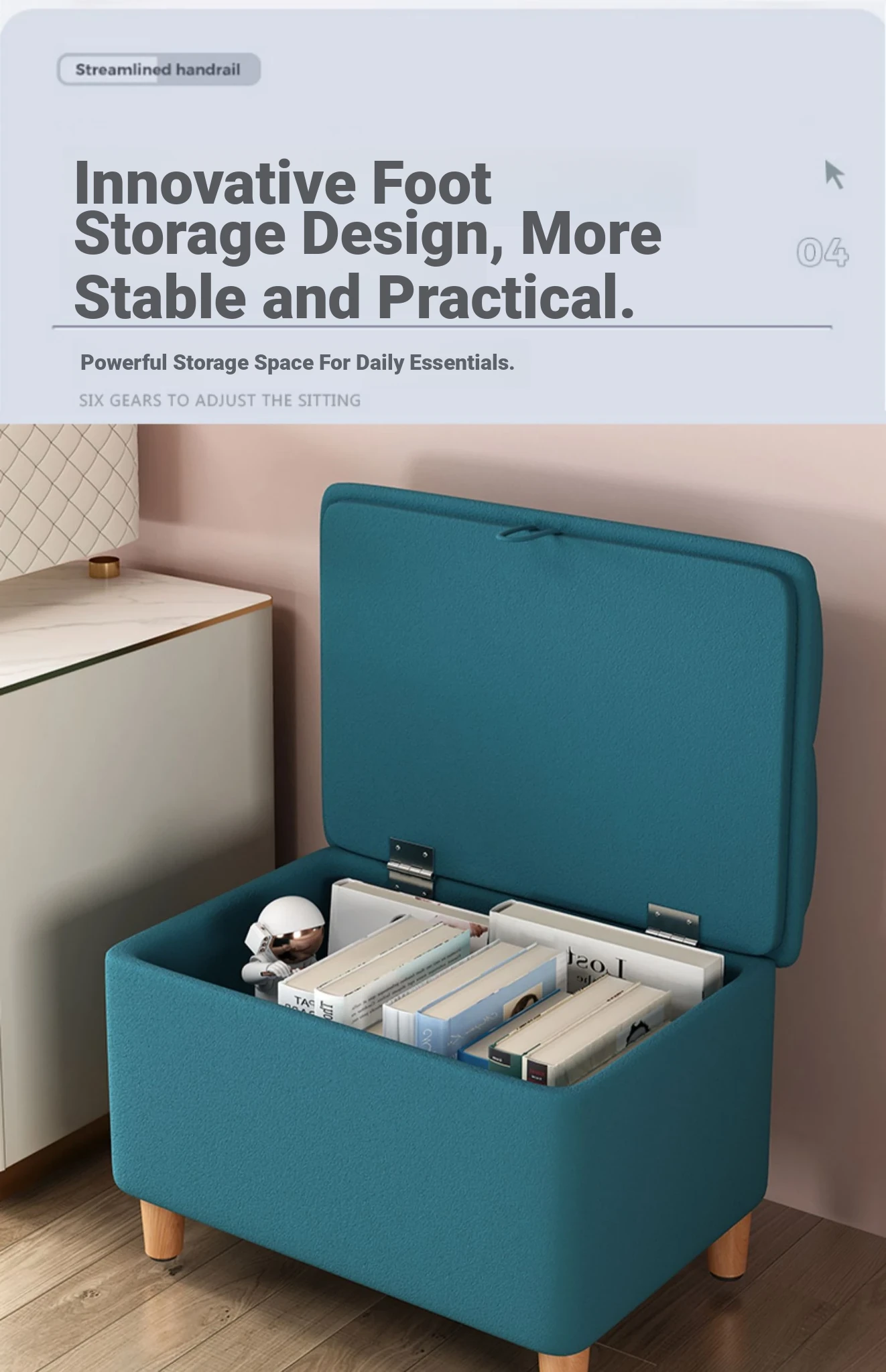 Upgraded latex lake blue sofa + pedal (Comfortable cotton and linen fabric)