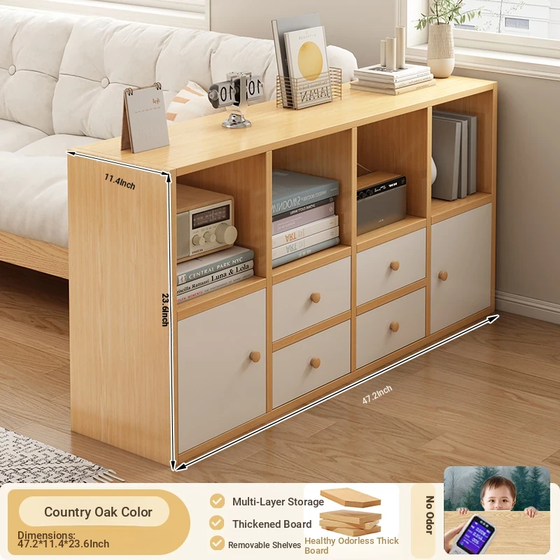[Drawer★Four grid] 55.12in*11.42in*29.53in pastoral oak color