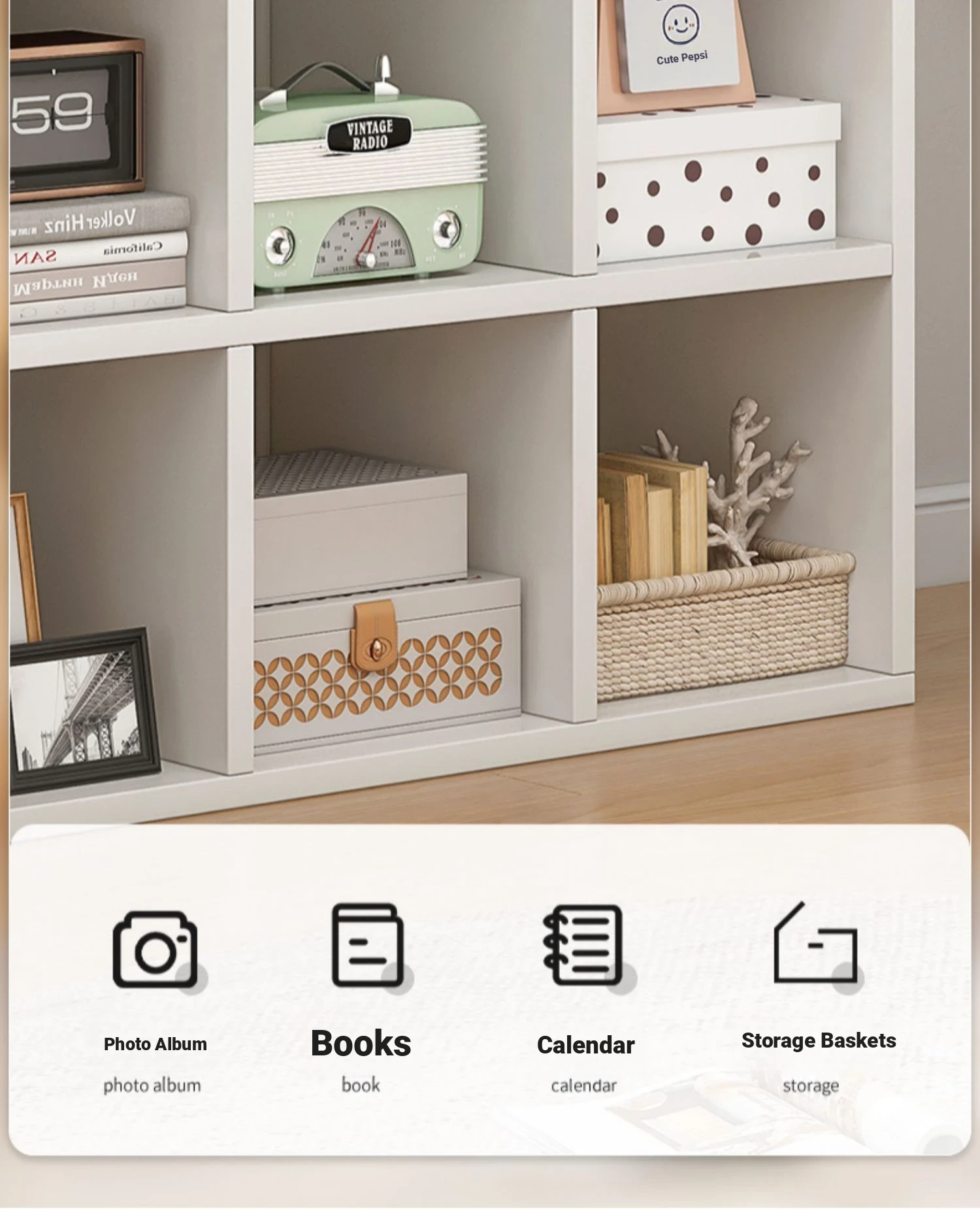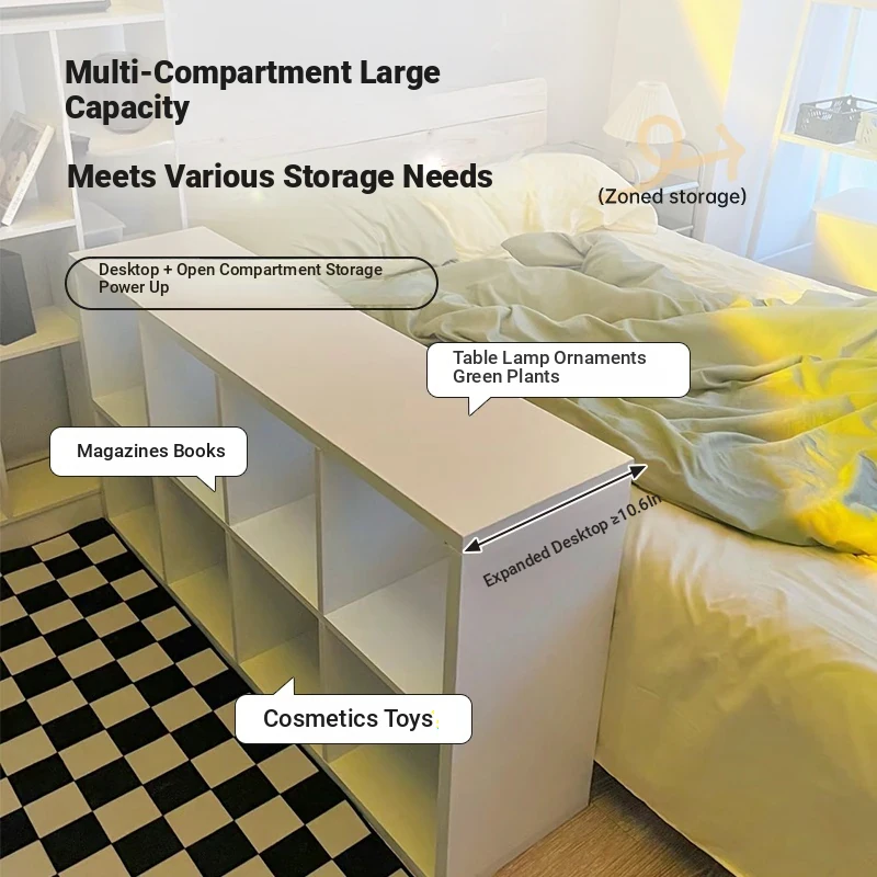 Cream Style Half-Enclosed Nightstand - Versatile Bookshelf and Storage Cabinet for Bedroom, Wall-Mounted Organizer and Room Divider, Perfect for Stylish Home Décor and Efficient Space Management.