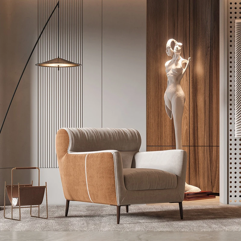 Creamy Minimalist Italian Sofa Chair - Modern Single Armchair for Living Room, Perfect for Relaxation and Conversations.