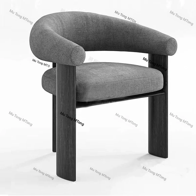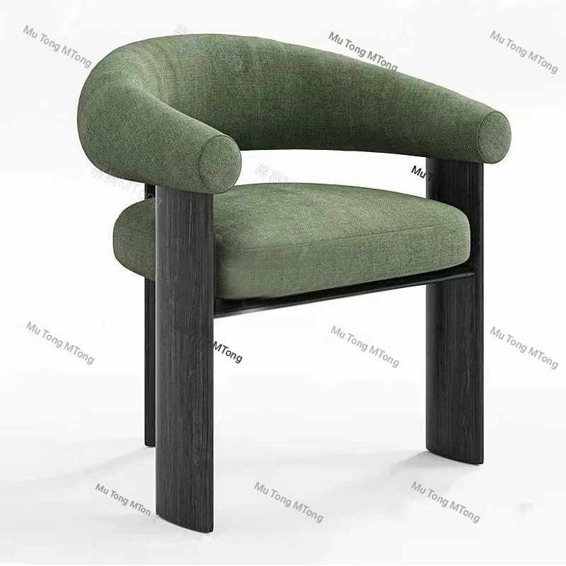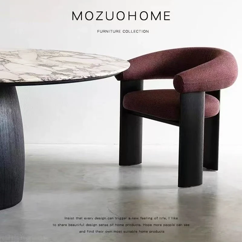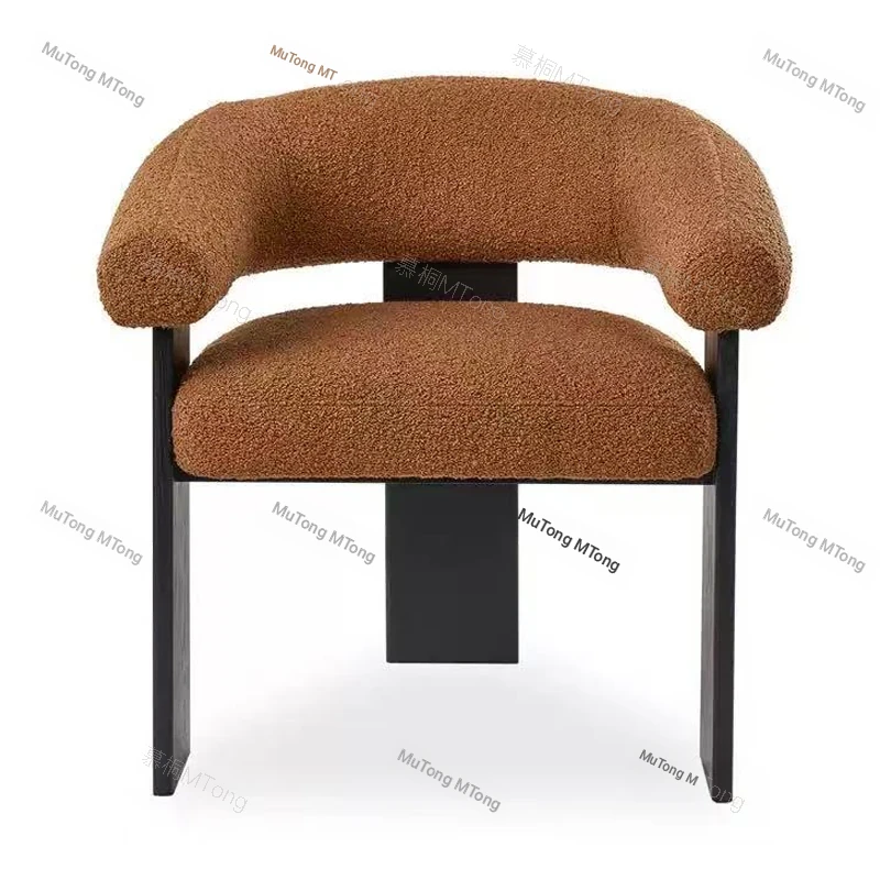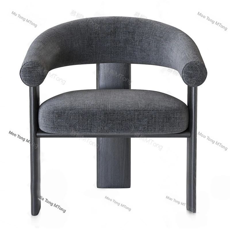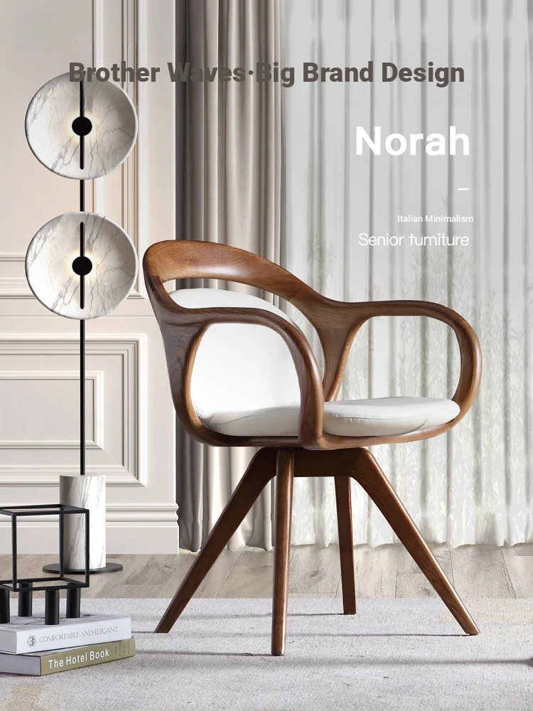 Designer Italian Minimalist Luxury High-End Solid Ash Wood Retro Genuine Leather Dining Chair with Armrests - Perfect for Home, Reception, and Study