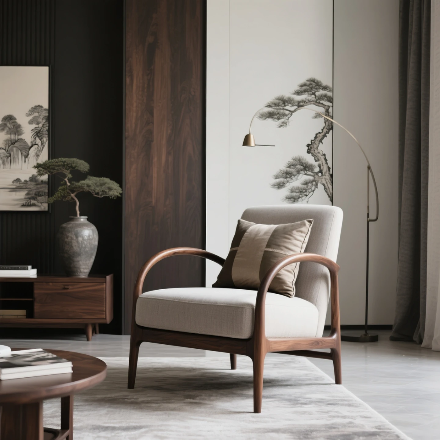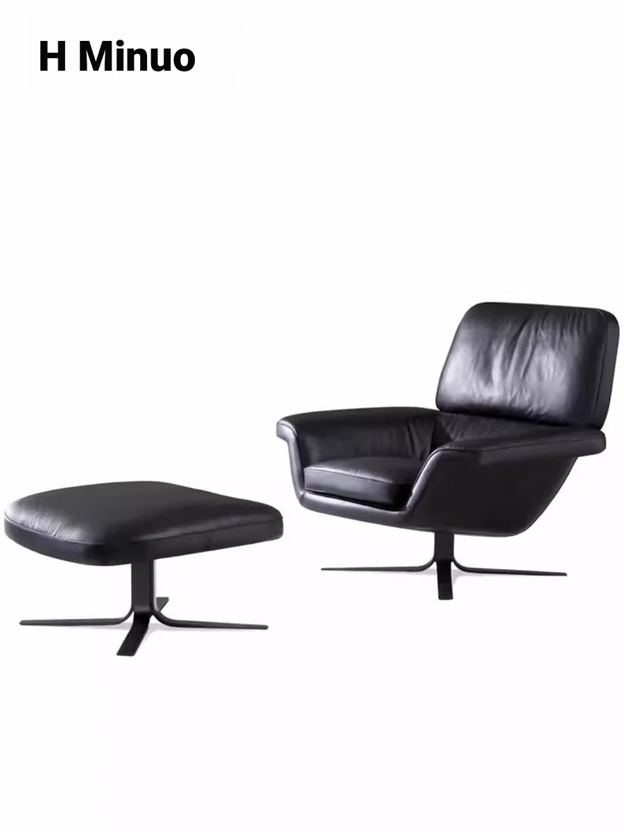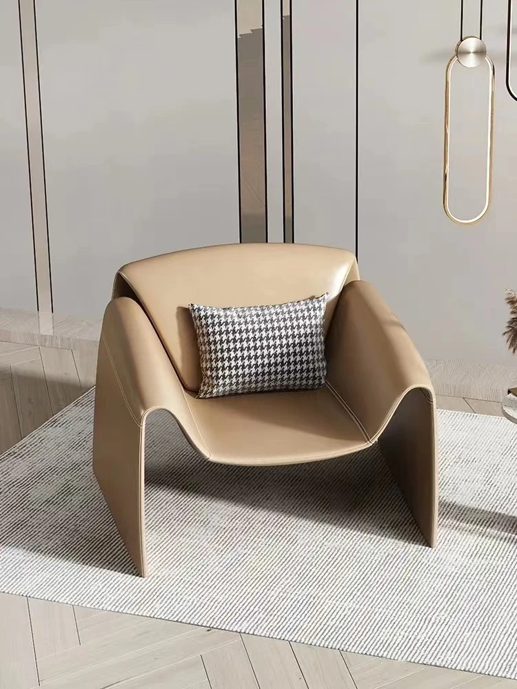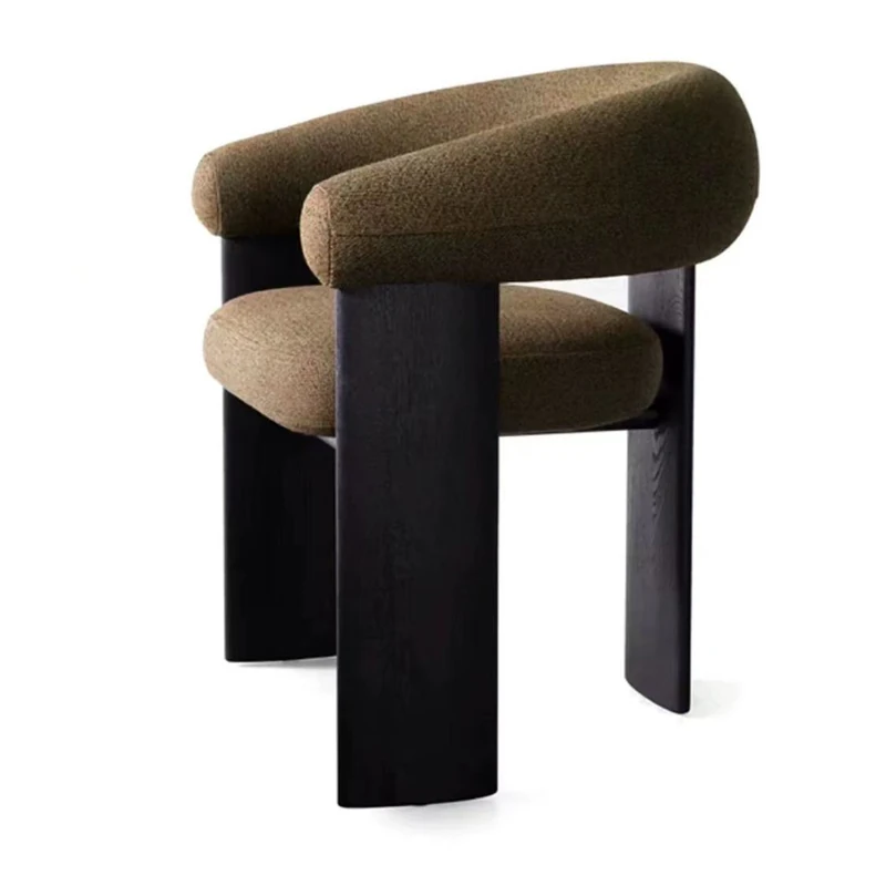 Designer Italian Minimalist Luxury High-End Solid Ash Wood Retro Genuine Leather Dining Chair with Armrests - Perfect for Home, Reception, and Study
