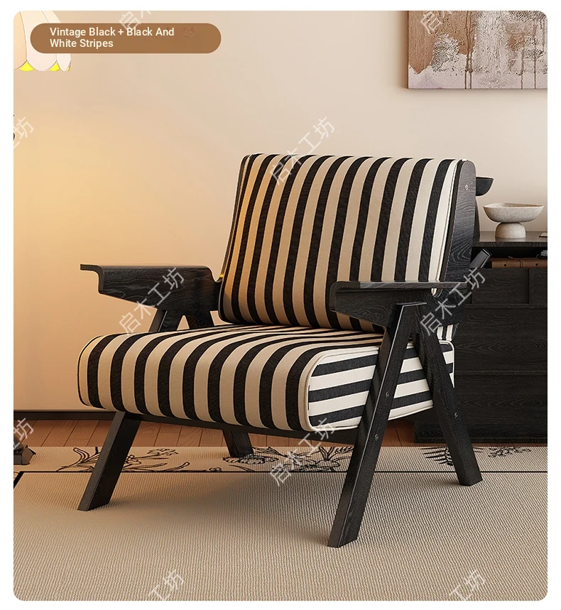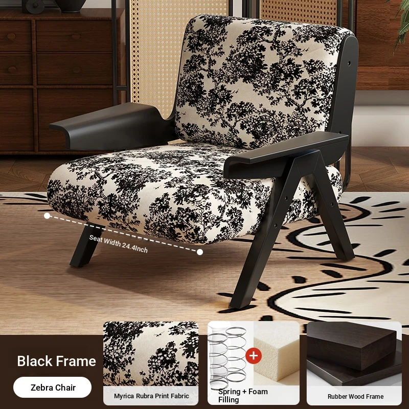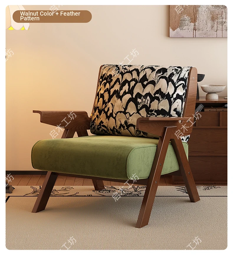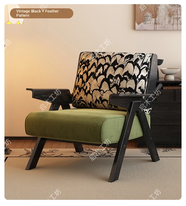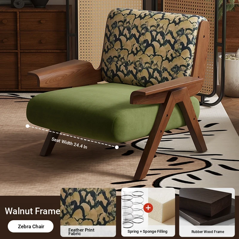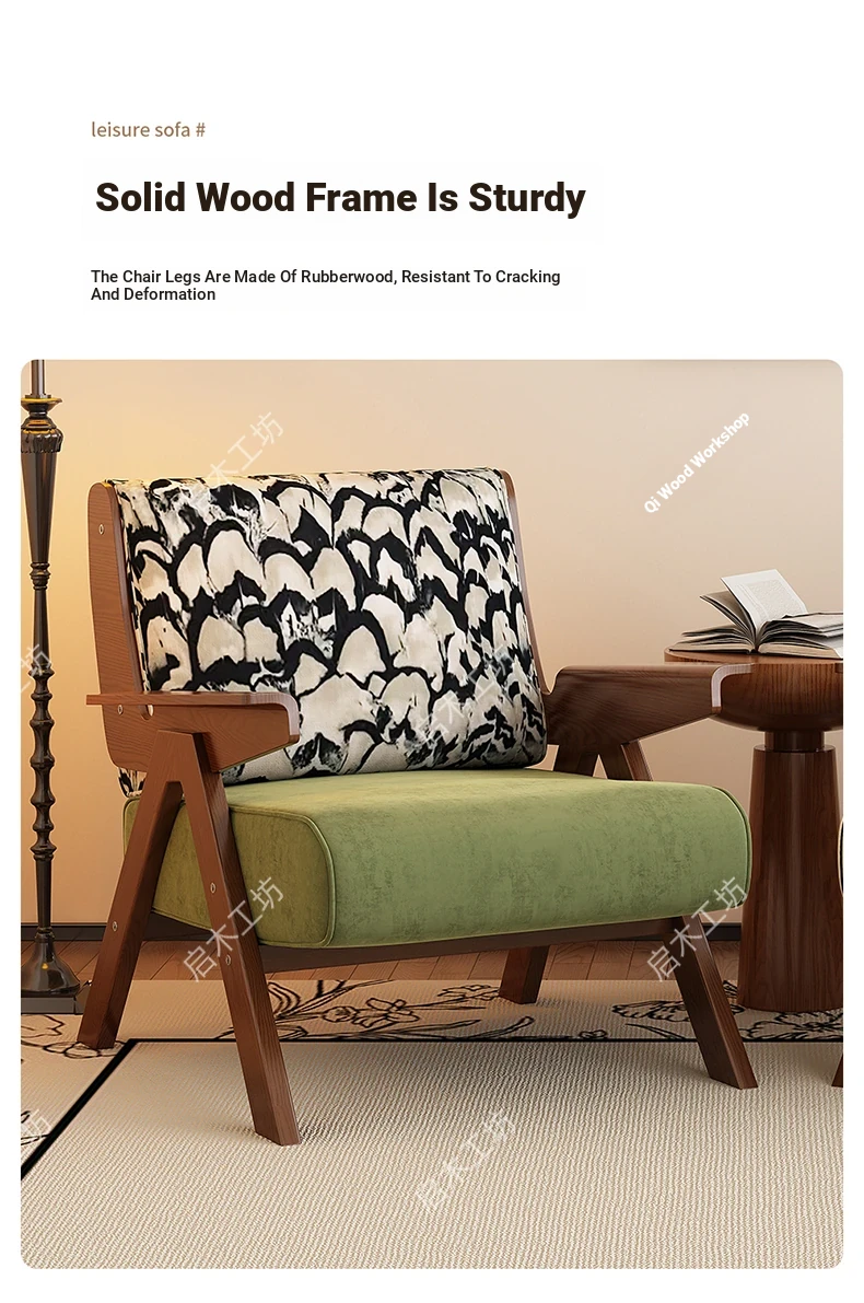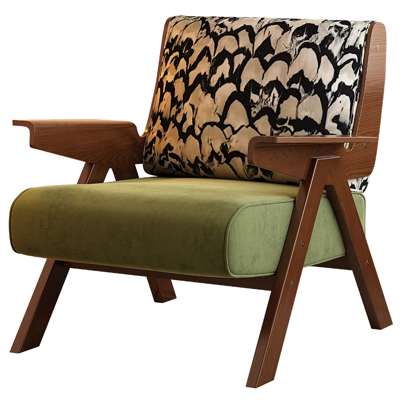 Designer Solid Wood Single Sofa Chair - French Fabric Lounge Chair with Backrest for Hotels - Vintage Style Relaxation Armchair