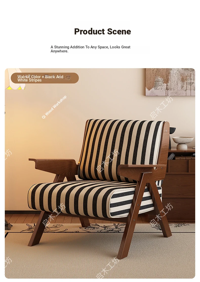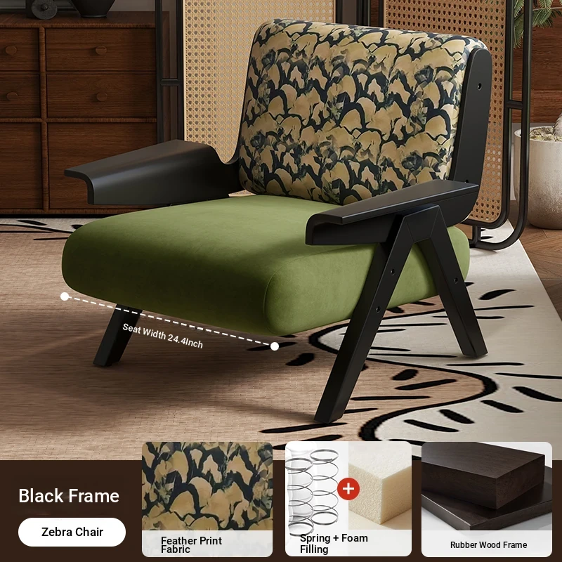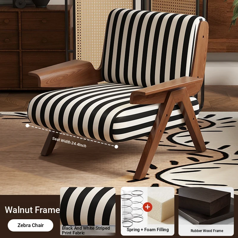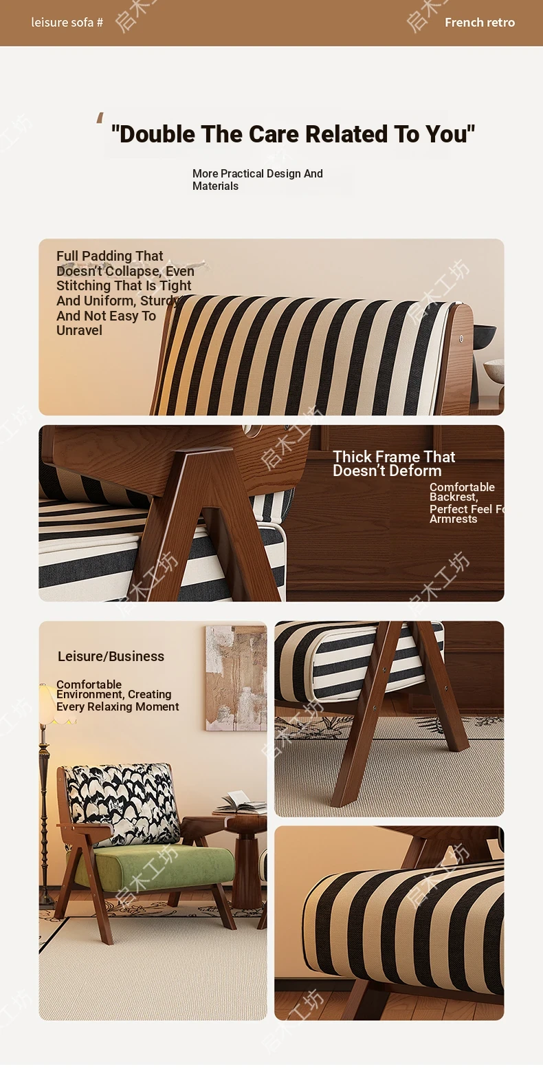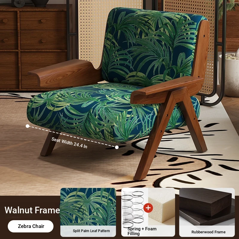 Designer Solid Wood Single Sofa Chair - French Fabric Lounge Chair with Backrest for Hotels - Vintage Style Relaxation Armchair