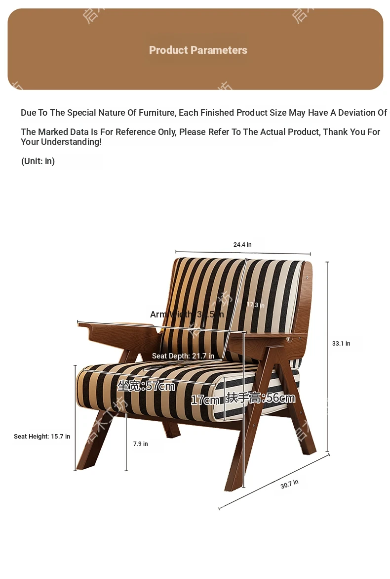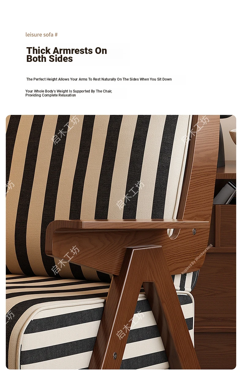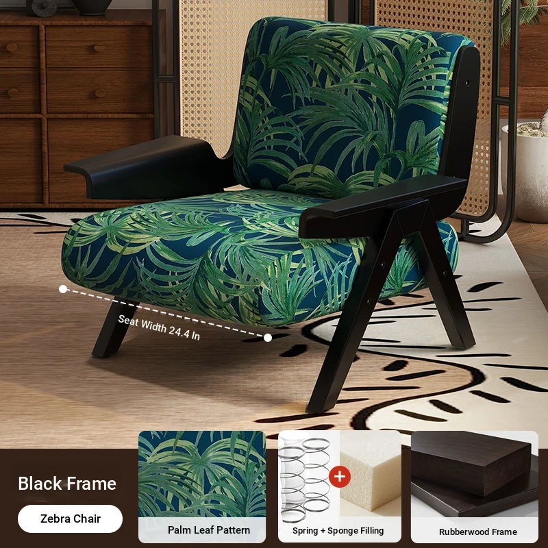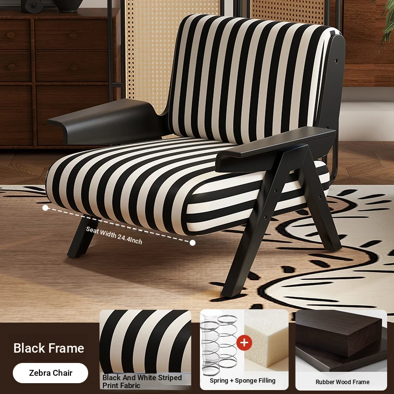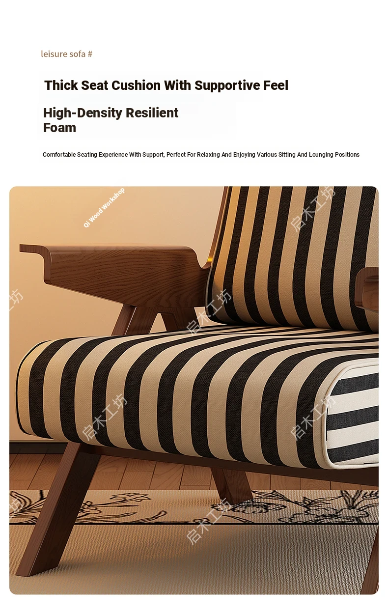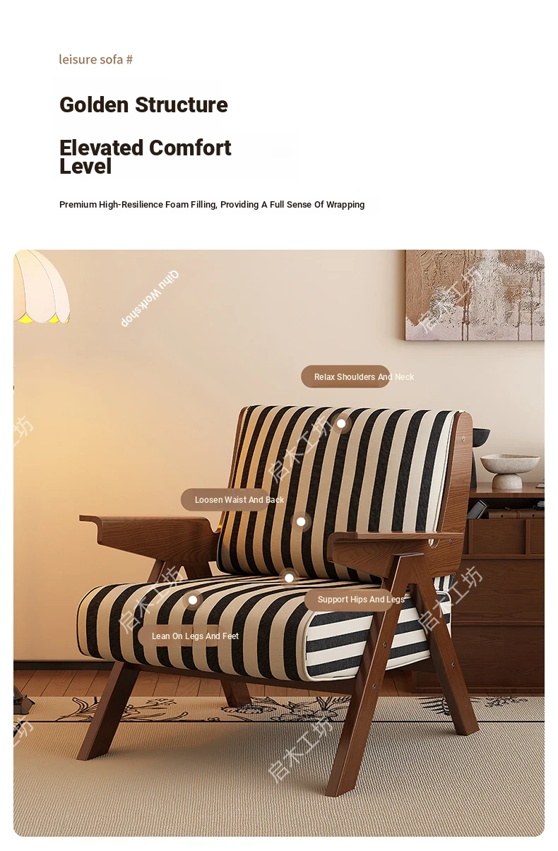 Designer Solid Wood Single Sofa Chair - French Fabric Lounge Chair with Backrest for Hotels - Vintage Style Relaxation Armchair