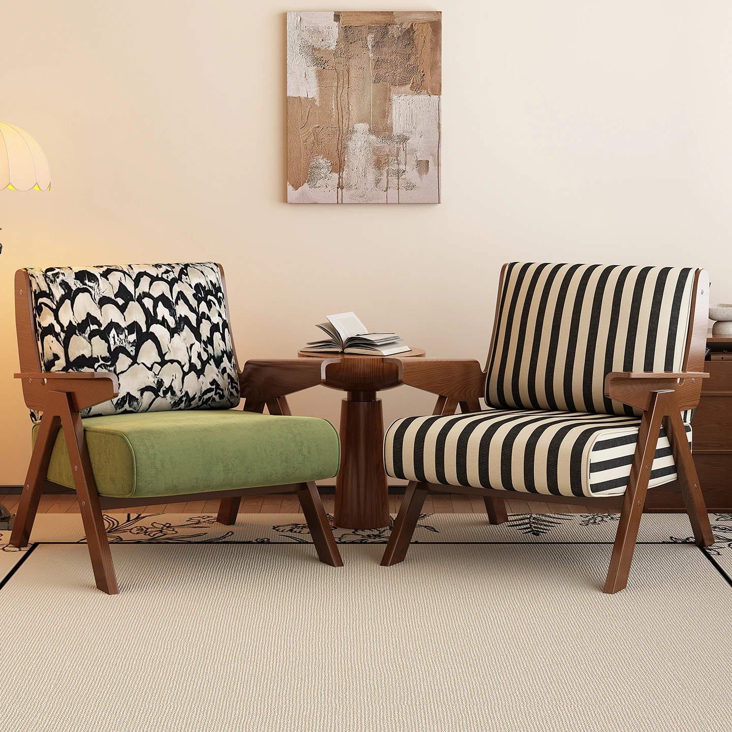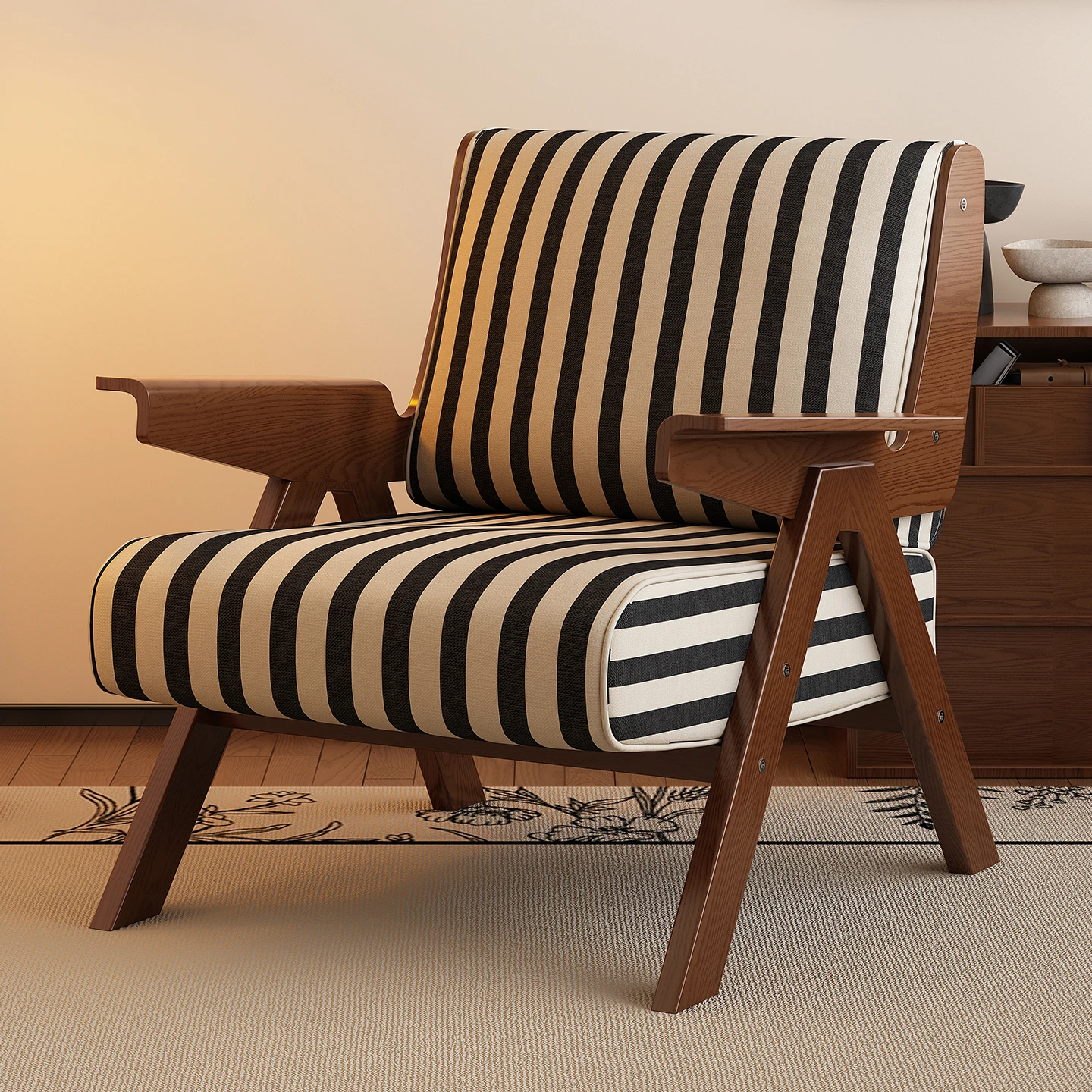 Black and white Stripes [walnut frame])