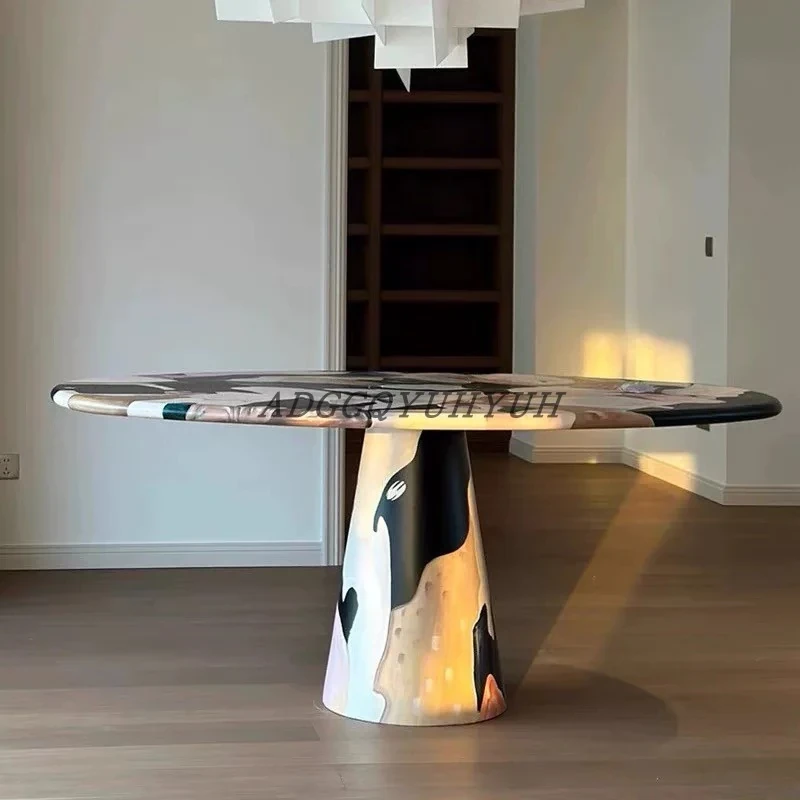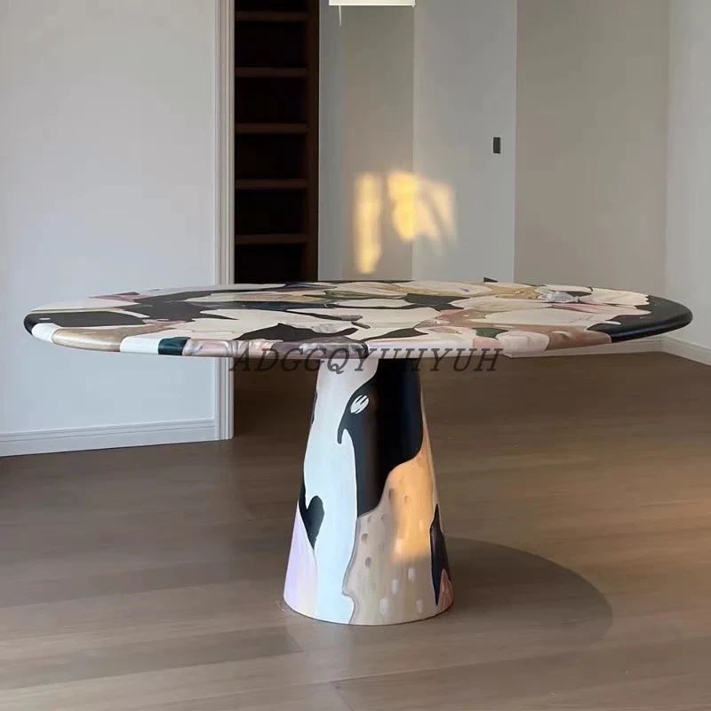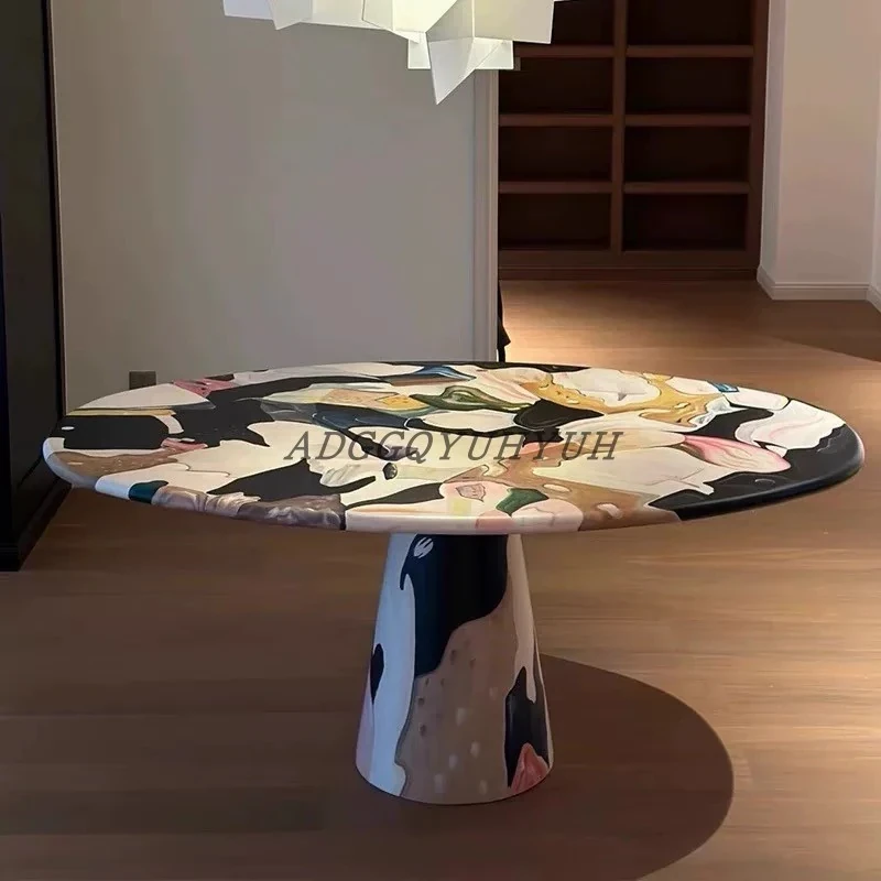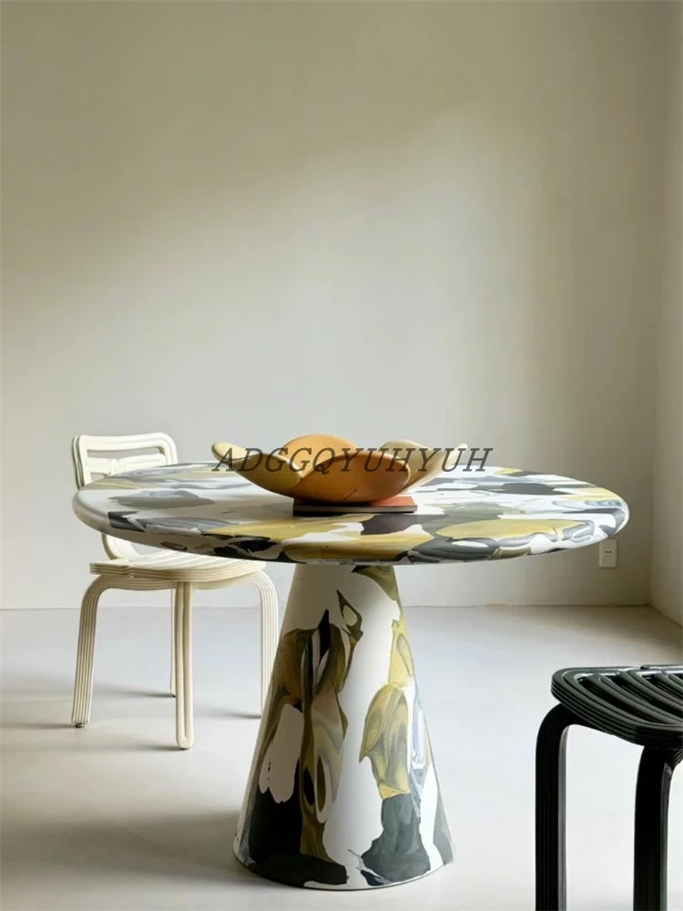Designer Vintage Art Hand-painted Oil Painting Round Dining Table for Small Spaces - Creative Home Use Dining and Meeting Table