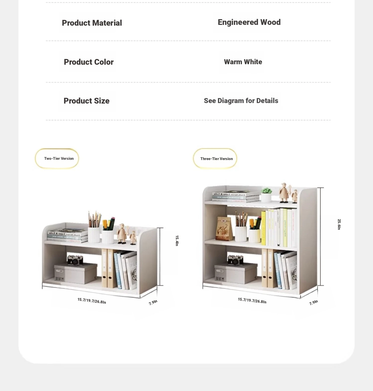 Two layers ☆ Yunxi White 15.75in*7.87in*15.35in