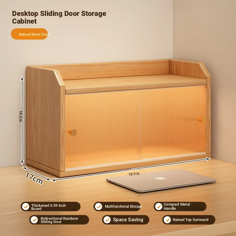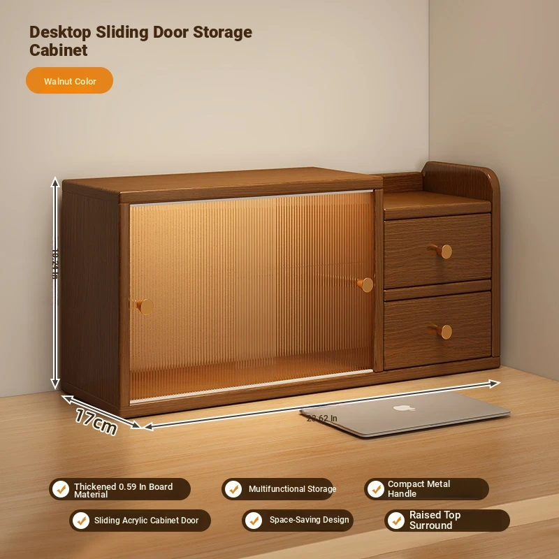 [High permeability sliding door 2 cabinet door⭐Double layer] log color 23.62in*6.69in*10.24in-thickened 0.59in