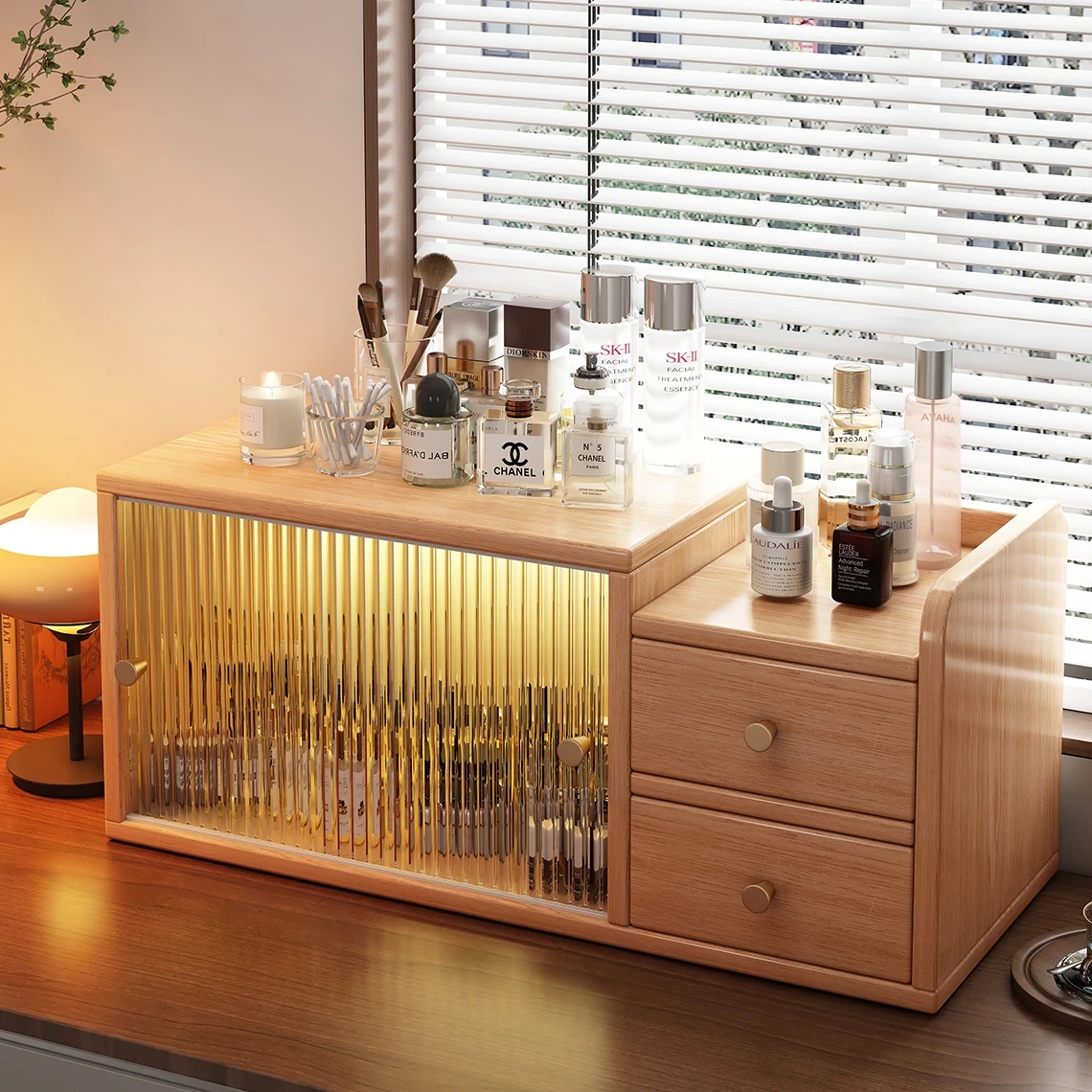 Desktop Makeup Organizer - Stylish Storage Cabinet for Women, Perfect for Your Desk or Window Sill, Ideal for Cosmetics and Everyday Essentials, Keep Your Space Neat and Chic!