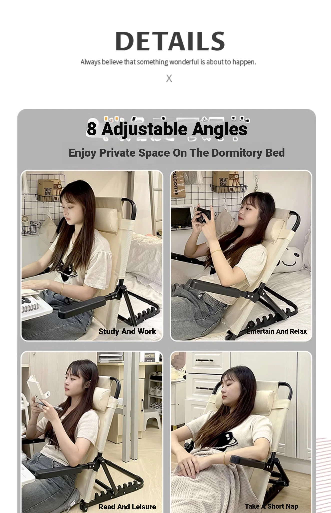 Dormitory Backrest Chair for College Students - Comfortable Folding Lounge Chair with Cushions, Perfect for Long Sitting, Tatami Lazy Sofa for Relaxation and Study.