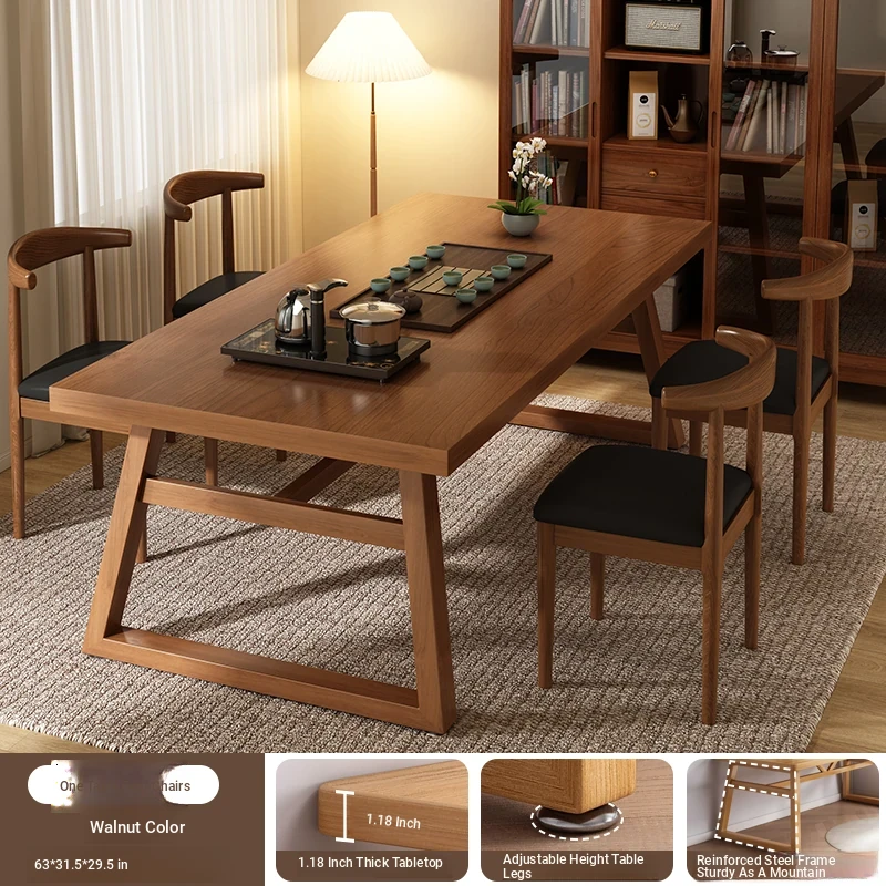 [Caixing Gao Zhao❤Upgrade thickened 1.18in desktop❤One table and four chairs] walnut color 160/80/29.53in