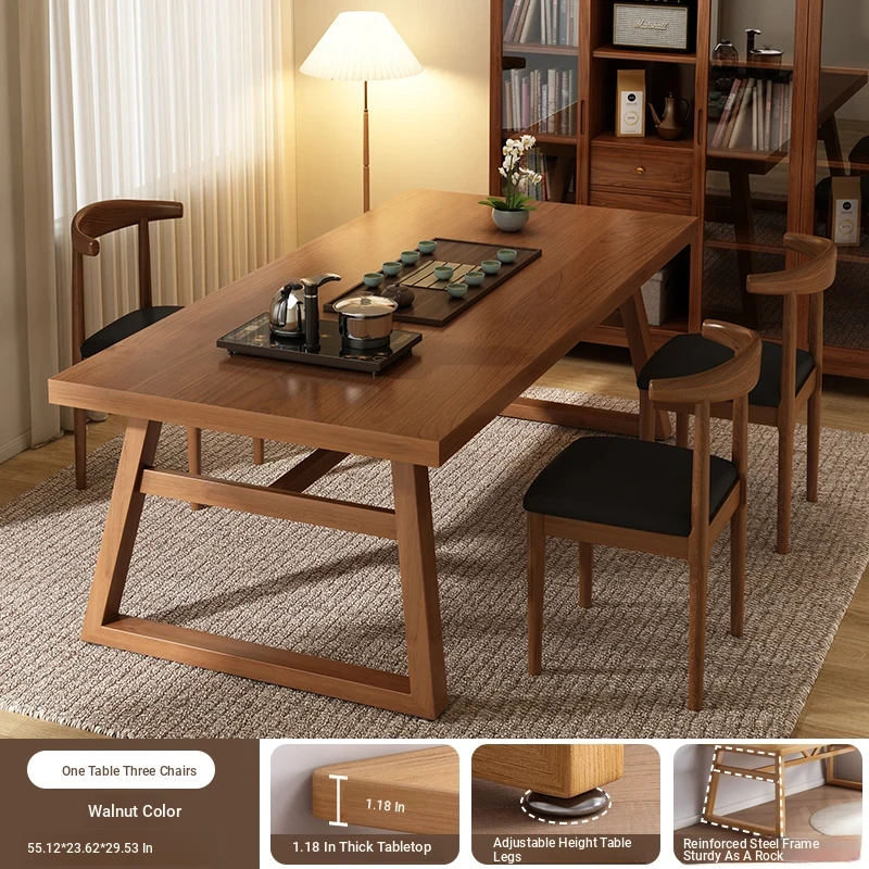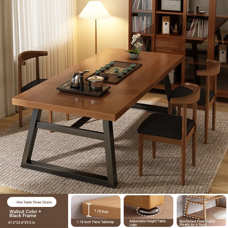 [Auspicious stars shine high❤Upgrade thickened 1.18in desktop❤A table of 3 chairs] walnut + black frame 55.12in*23.62in*29.53in