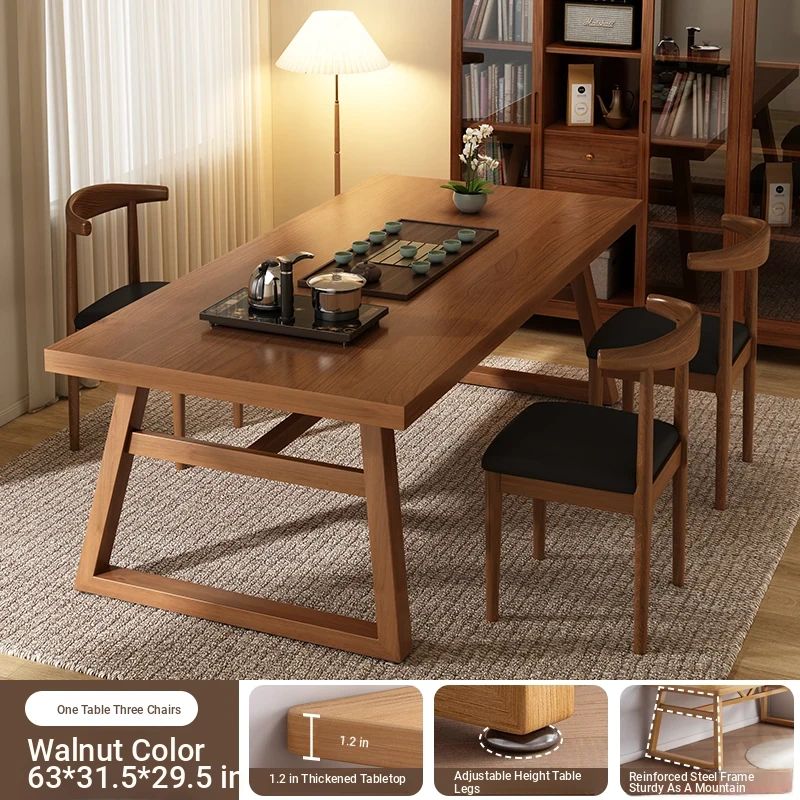 [Auspicious stars shine high❤Upgrade thickened 1.18in desktop❤A table of 3 chairs] walnut color 120/60/29.53in