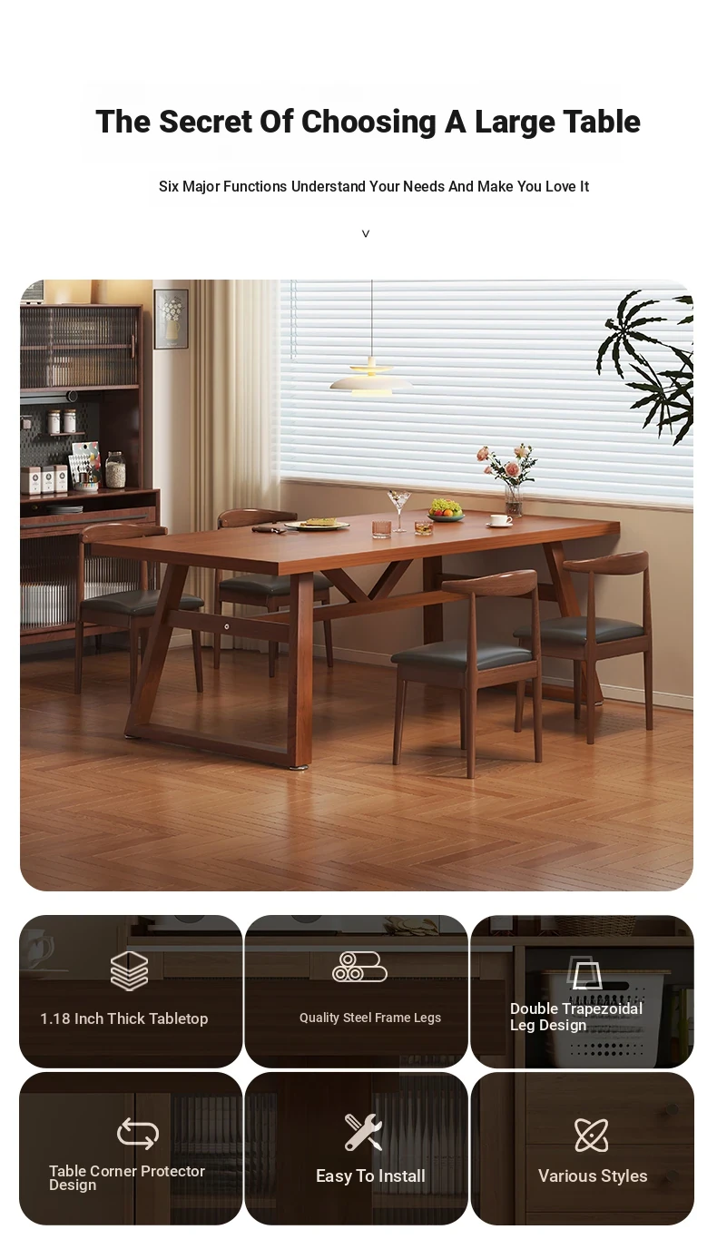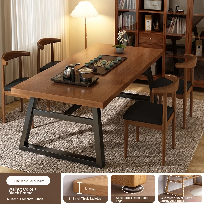 [Caixing Gao Zhao❤Upgrade thickened 1.18in desktop❤A table of 4 chairs] walnut + black frame 62.99in*31.50in*29.53in