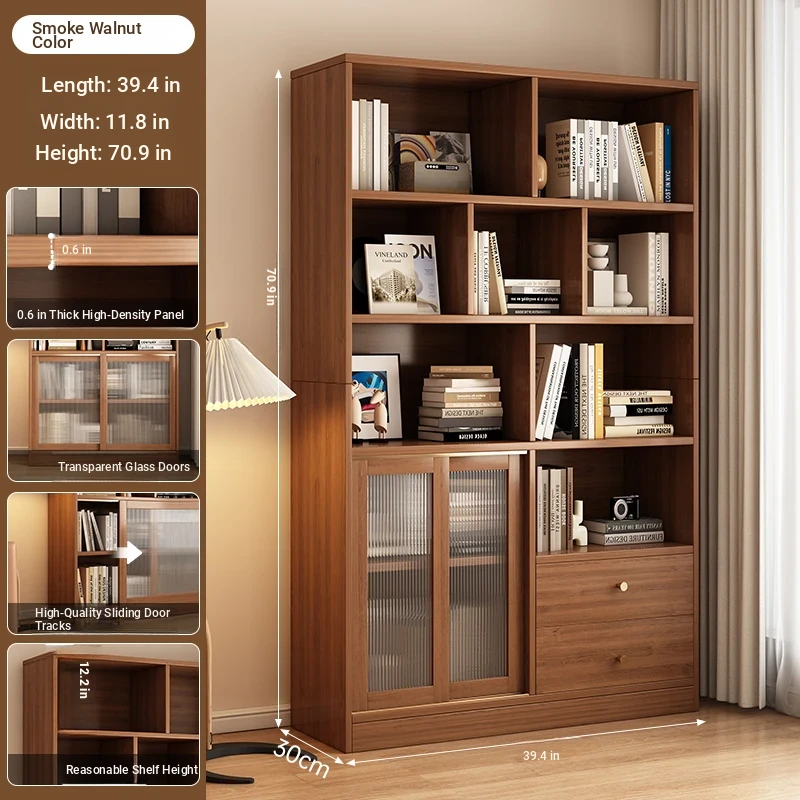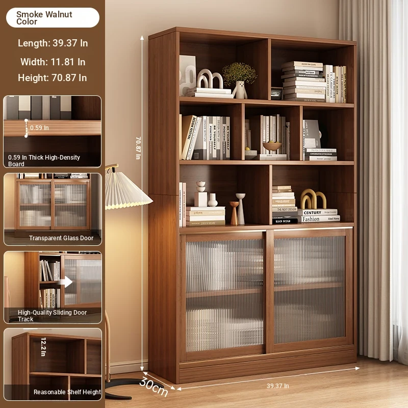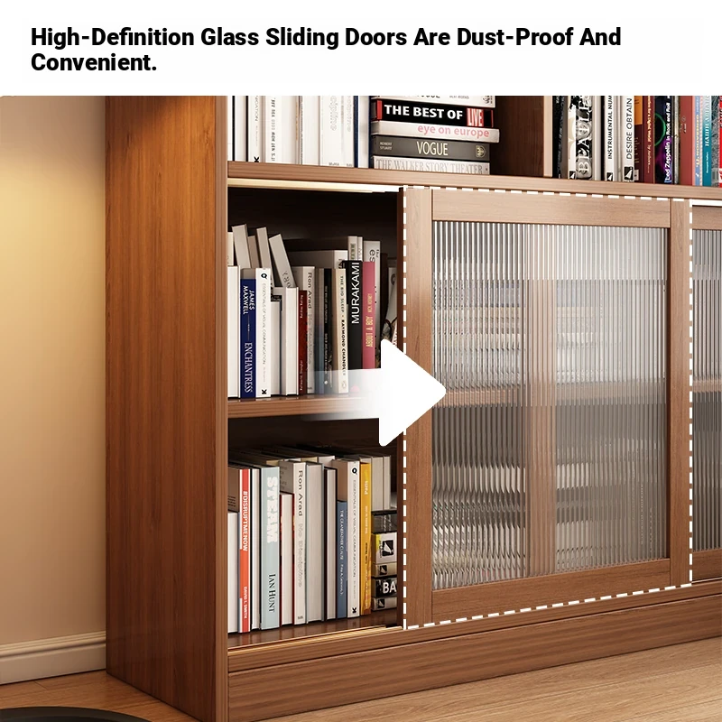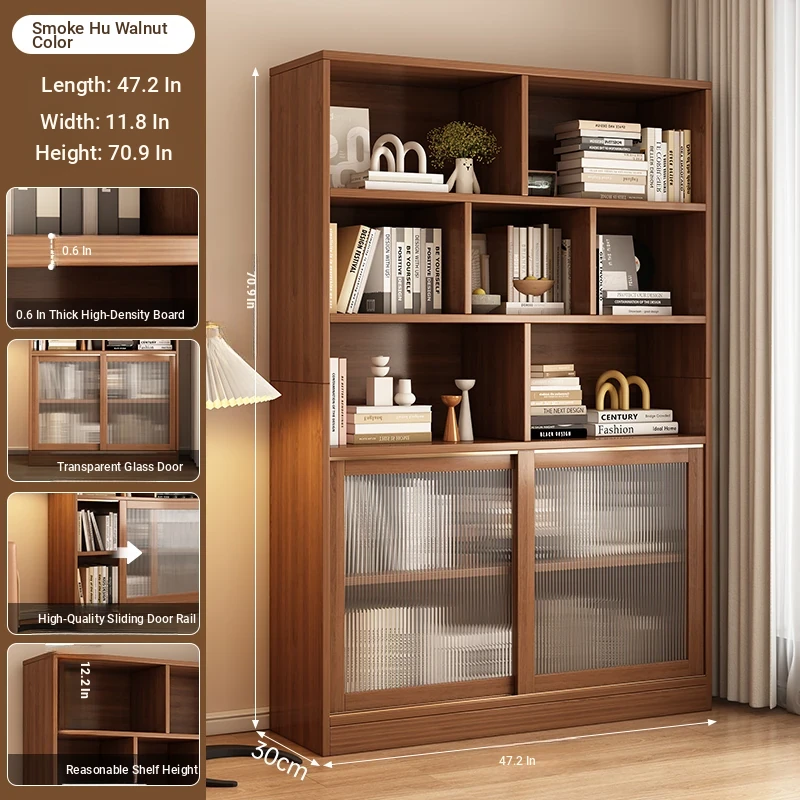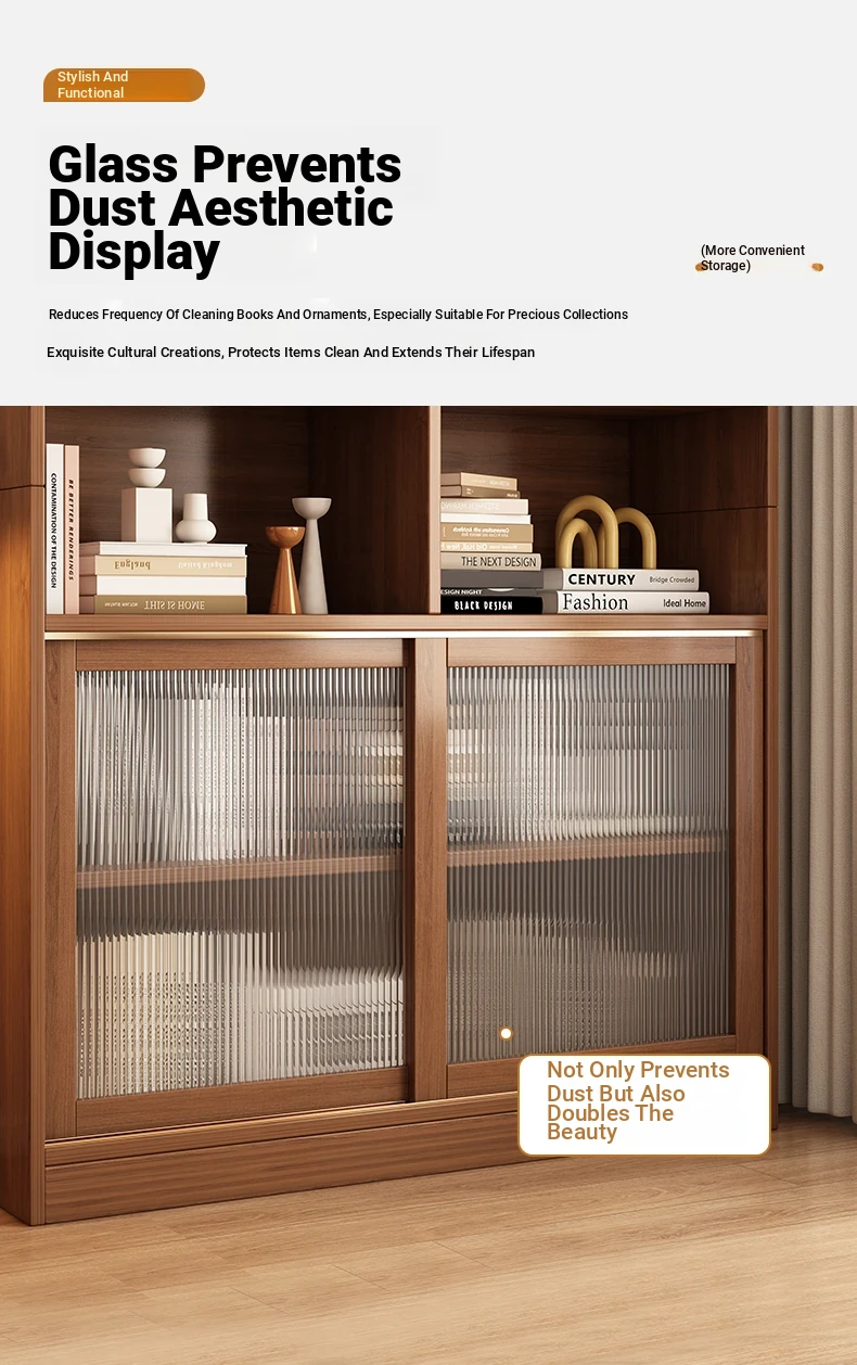 Elegant Glass-Door Bookshelf and Display Cabinet for Living Room – Stylish Floor Standing Storage Unit, Perfect for Home Organization and Wall-Mounted Convenience