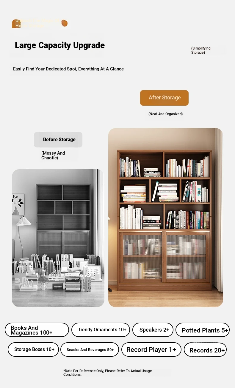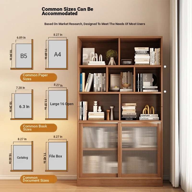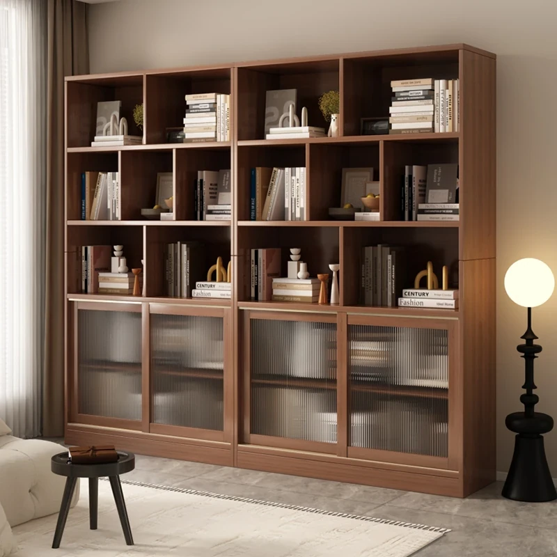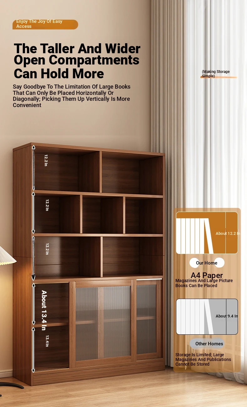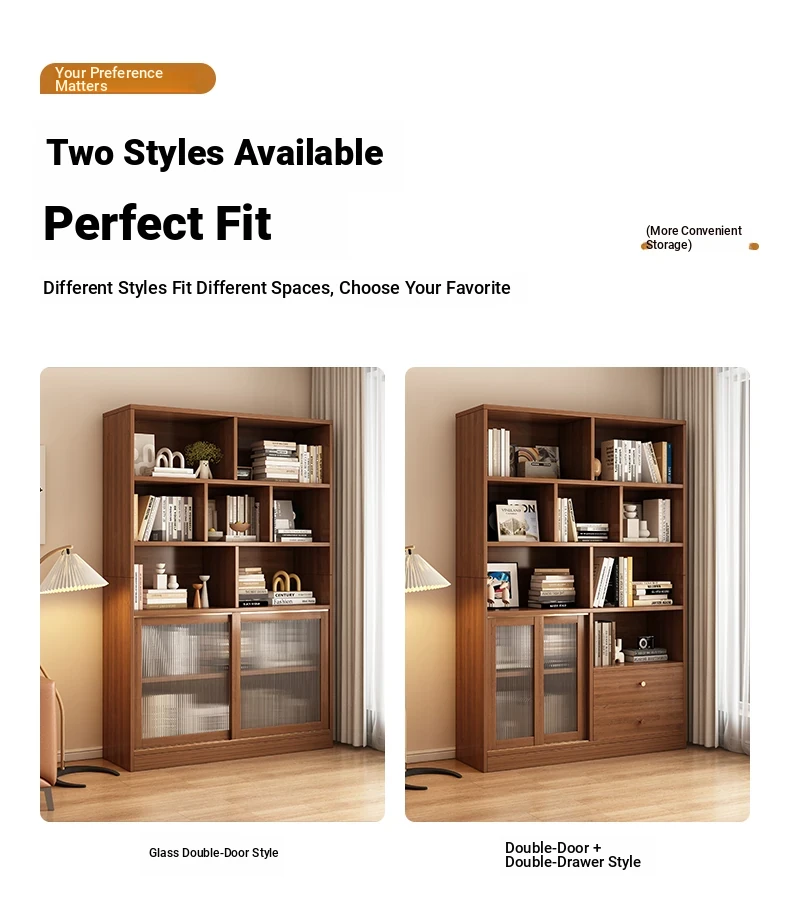 Elegant Glass-Door Bookshelf and Display Cabinet for Living Room – Stylish Floor Standing Storage Unit, Perfect for Home Organization and Wall-Mounted Convenience