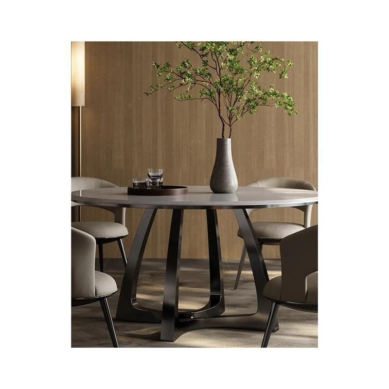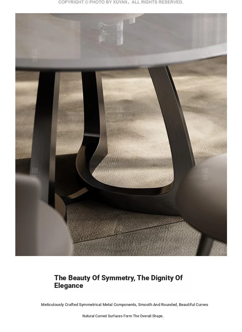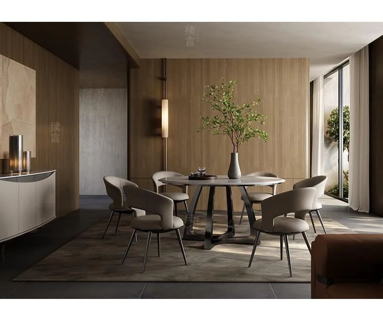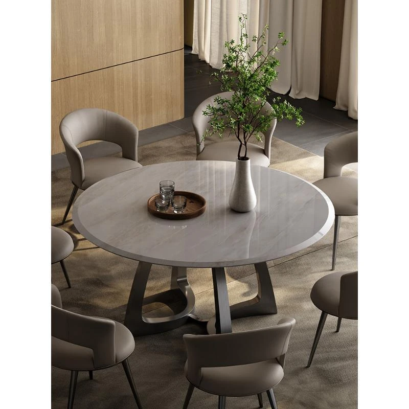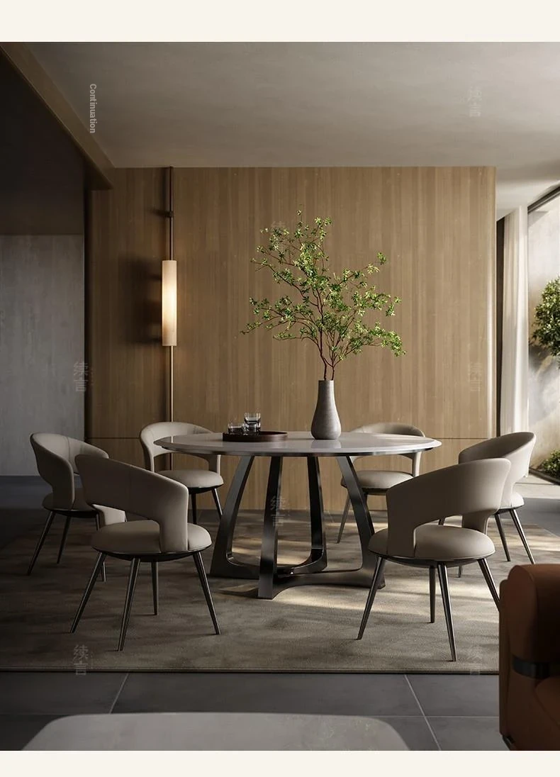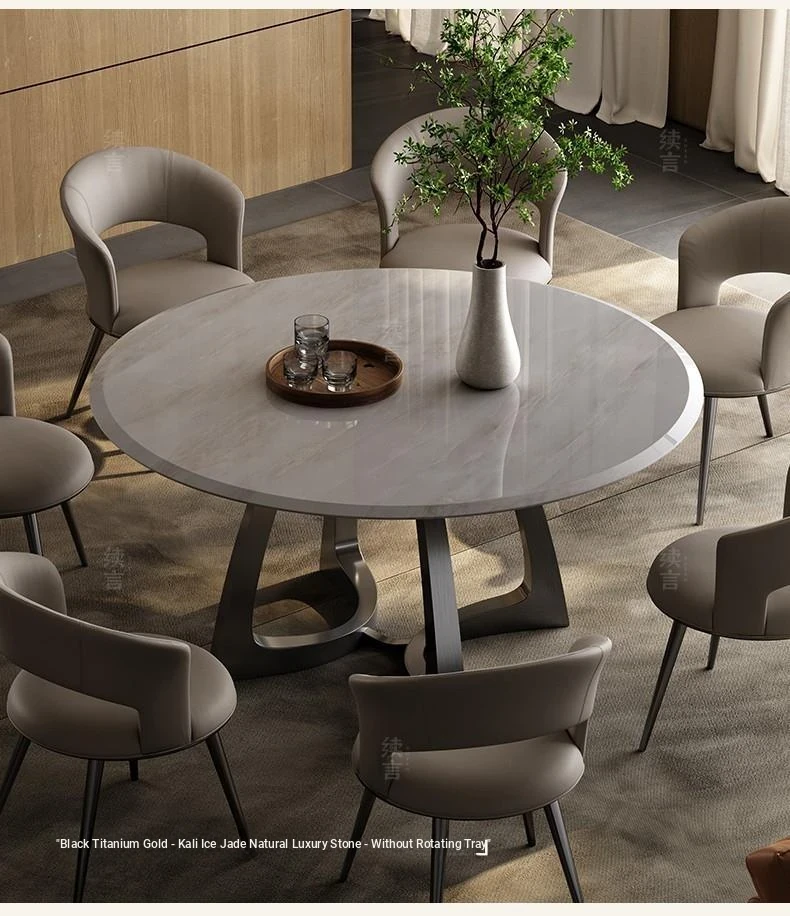 Elegant Natural Stone Dining Table Set - Luxury Round Marble Dining Table with Chairs for Modern Apartments and Villas, Perfect for Family Gatherings