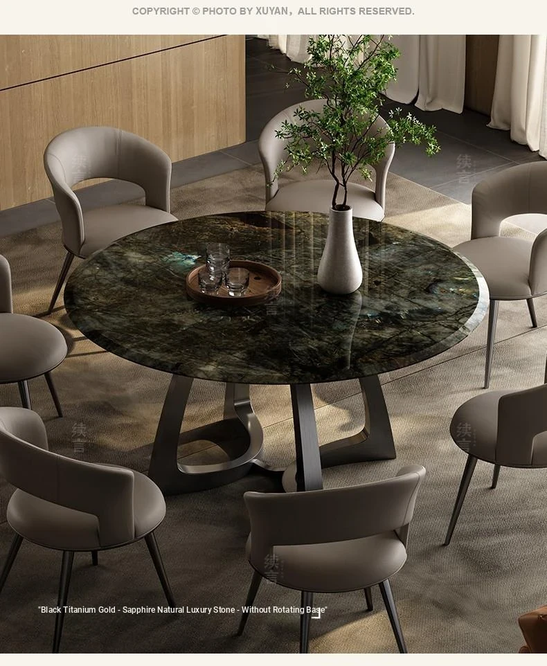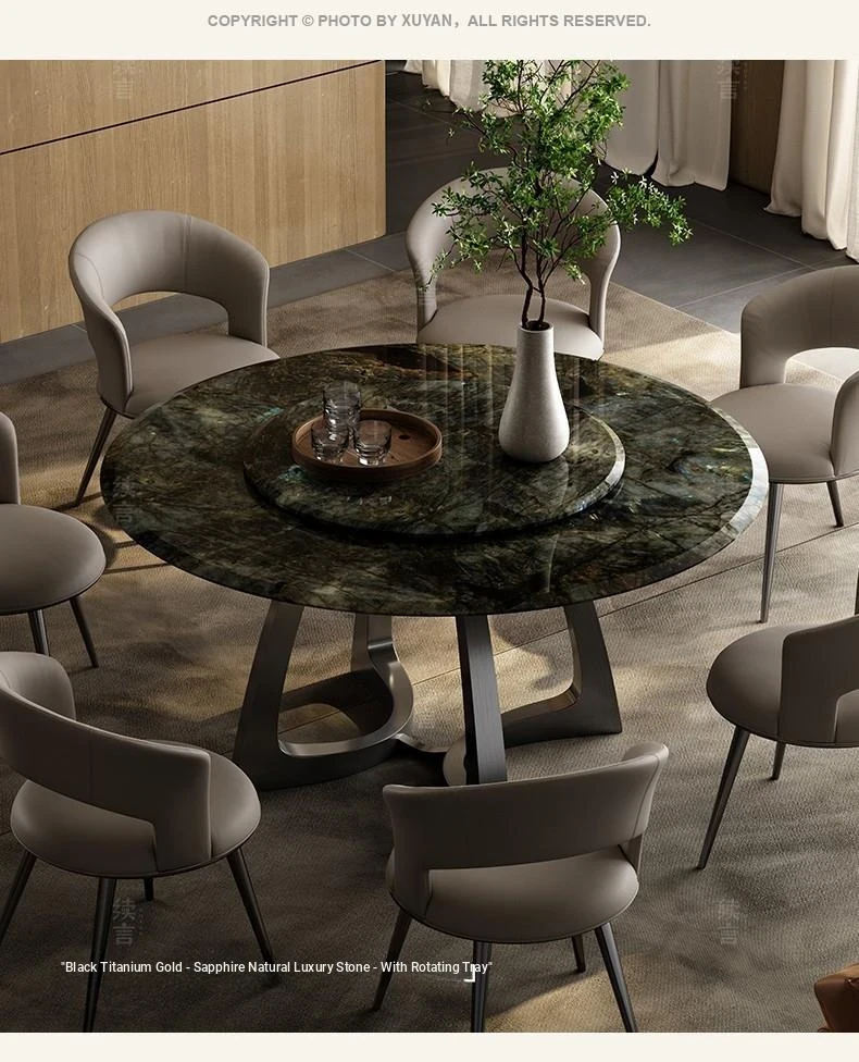 Dining table/51.18in/Sapphire luxury stone + turntable/black titanium gold