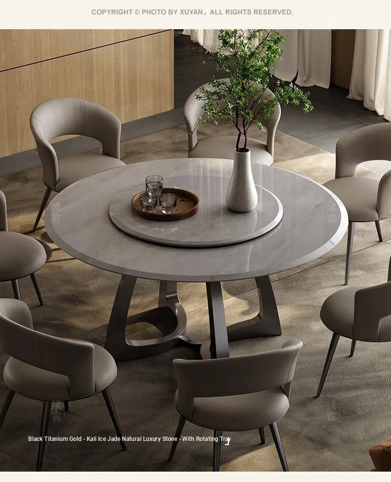 Dining table/51.18in/Cary ice Jade luxury stone + turntable/black titanium gold
