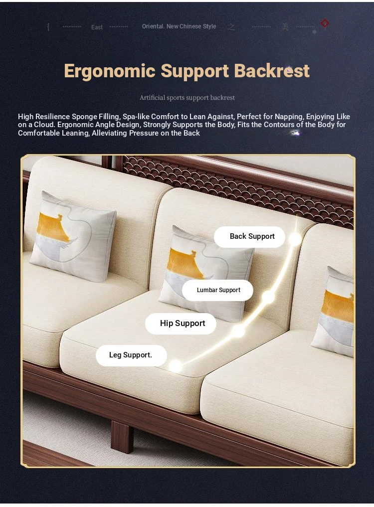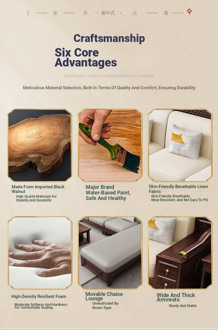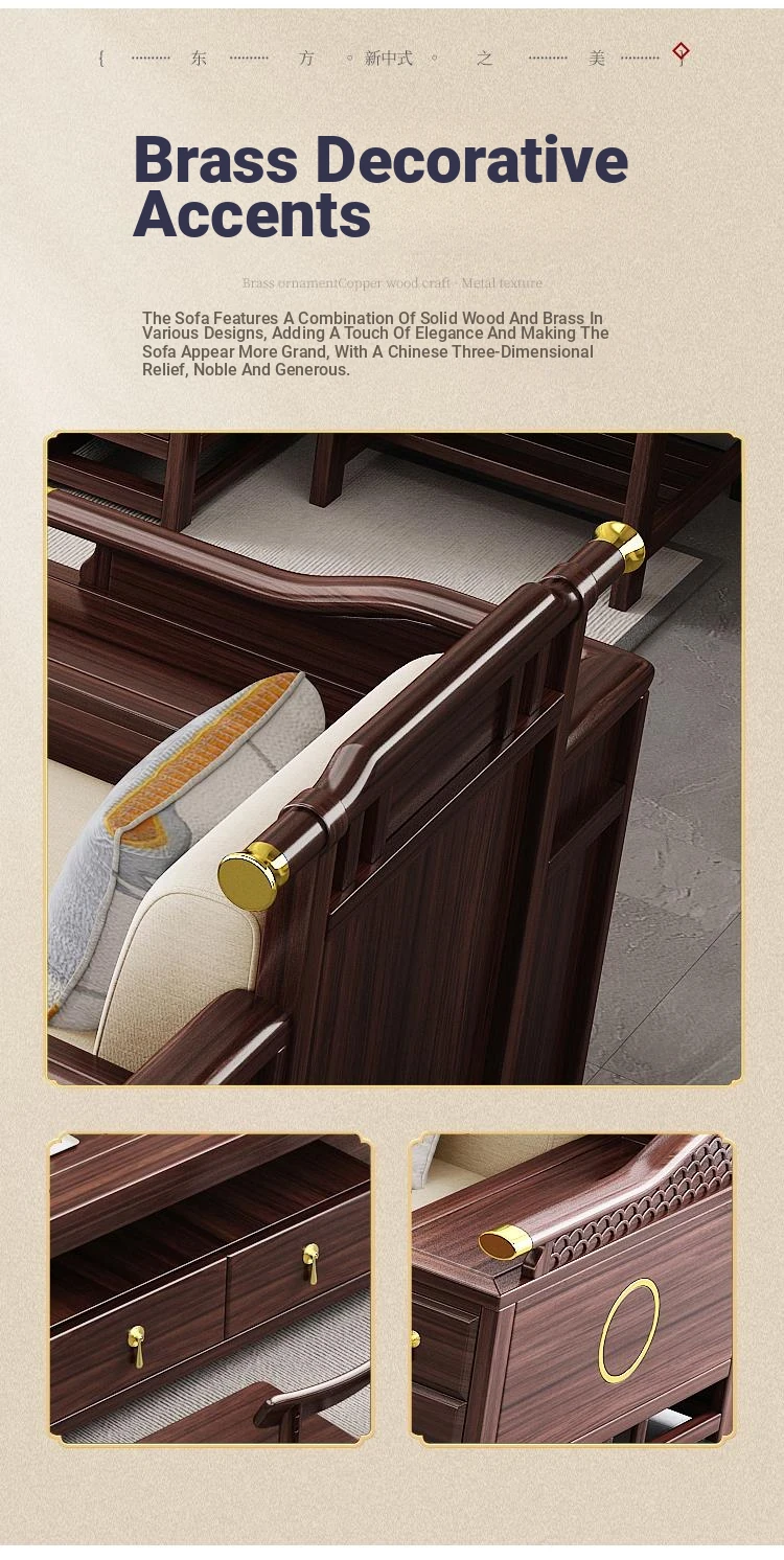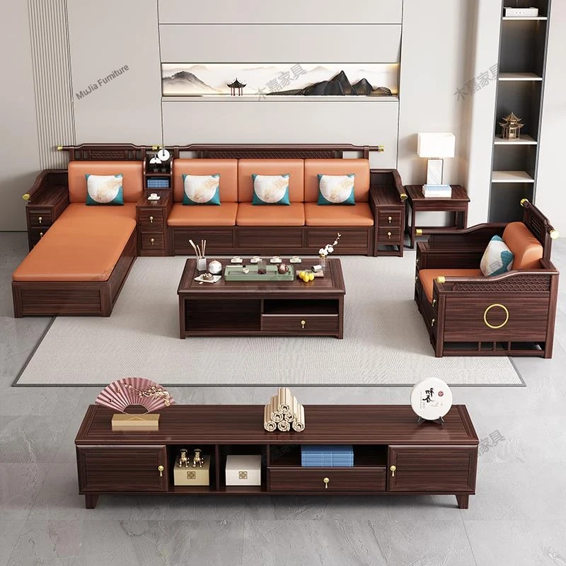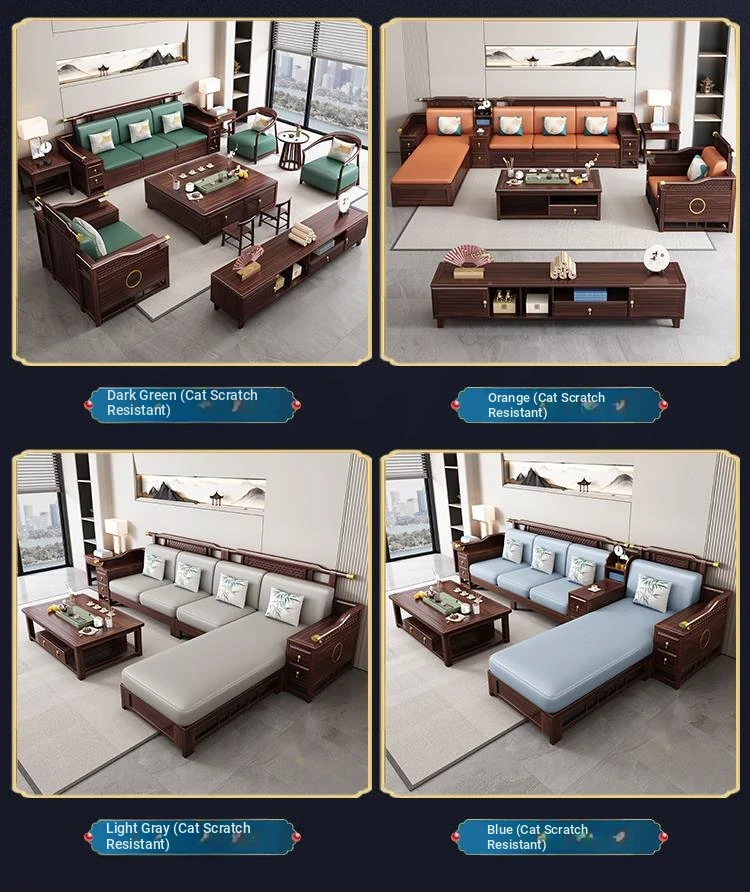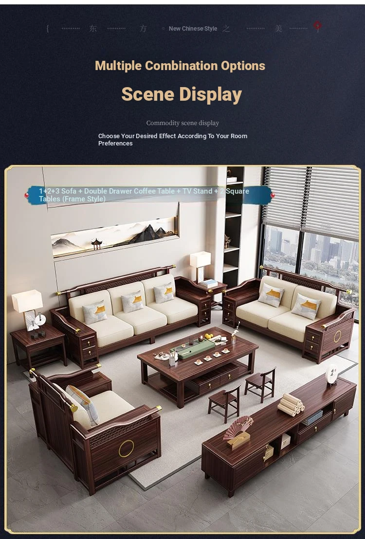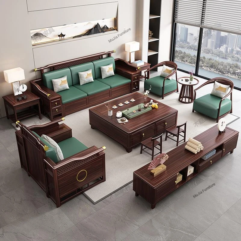 Elegant New Chinese Style Blackwood Sofa Set – All Solid Wood Frame, Luxurious Chaise Lounge for Spacious Living Rooms, Perfect for Year-Round Comfort in Winter and Summer.