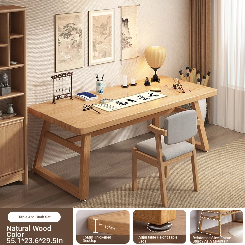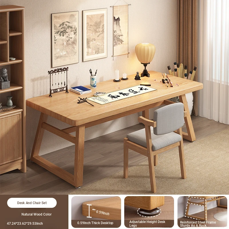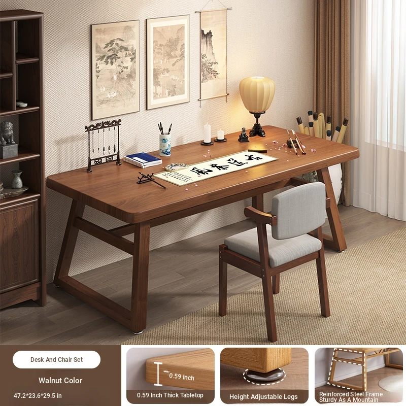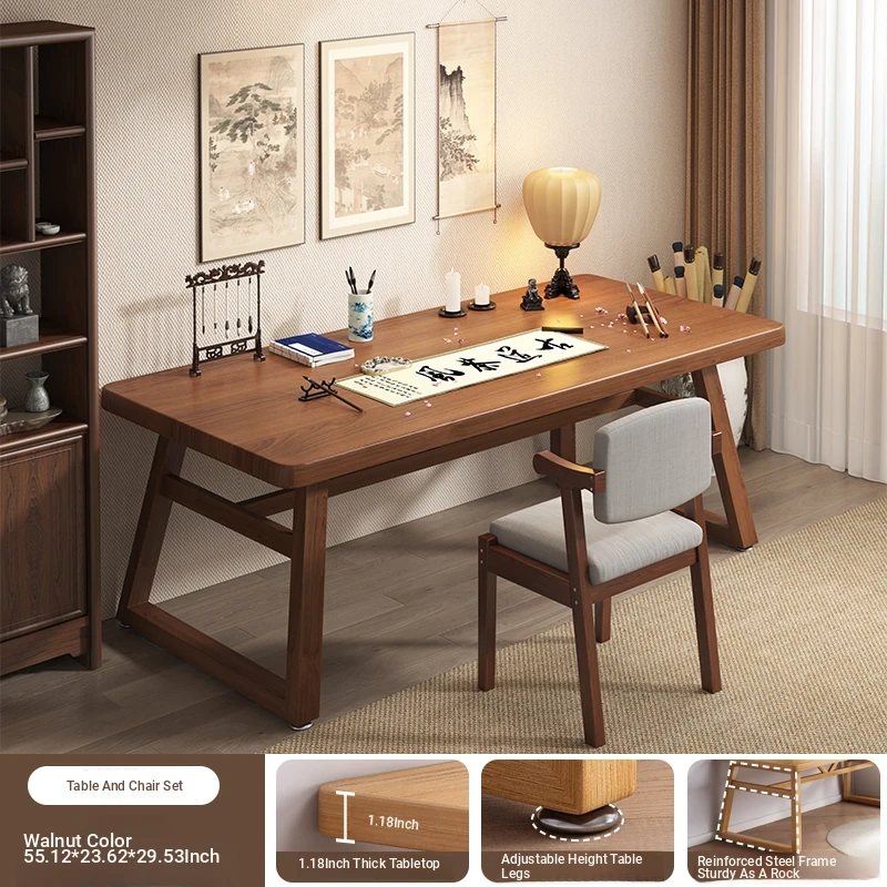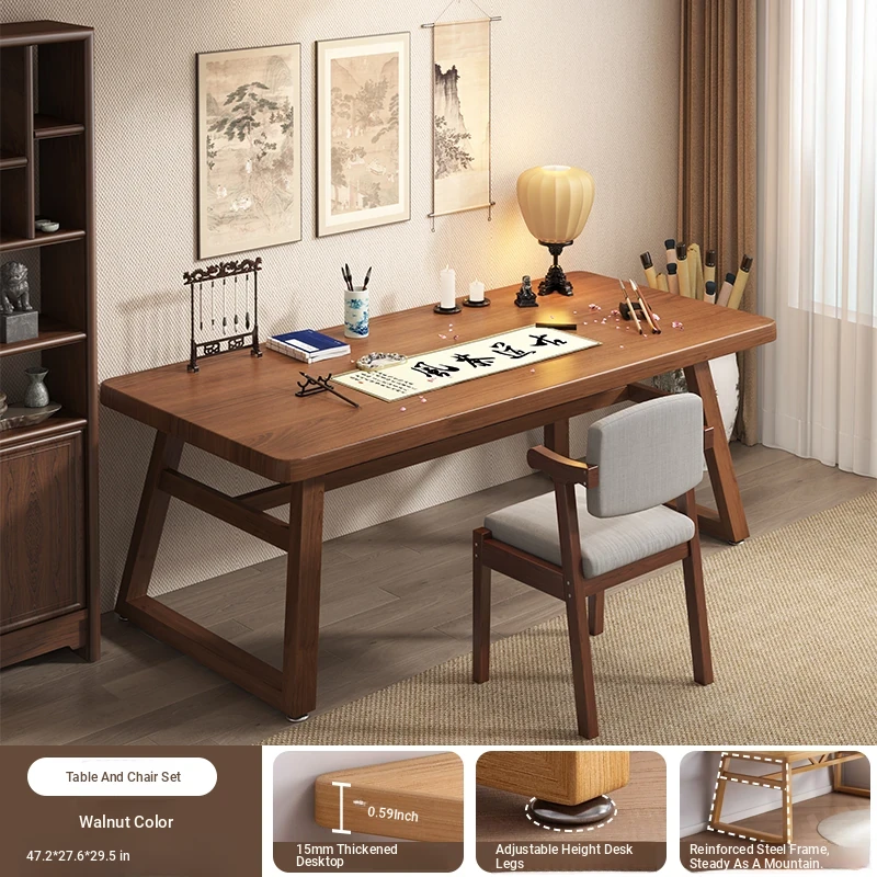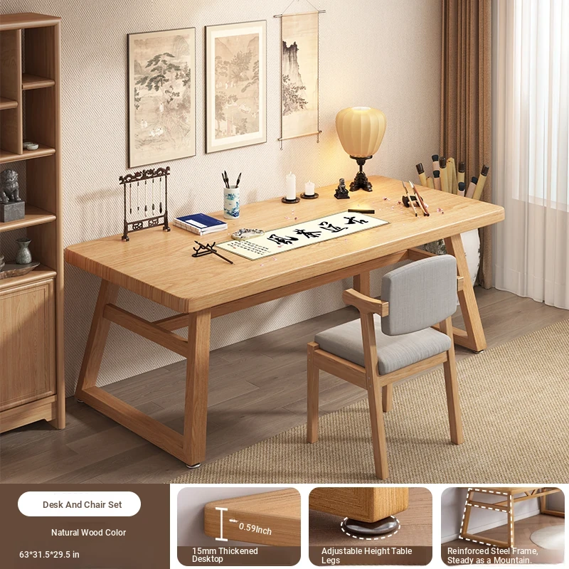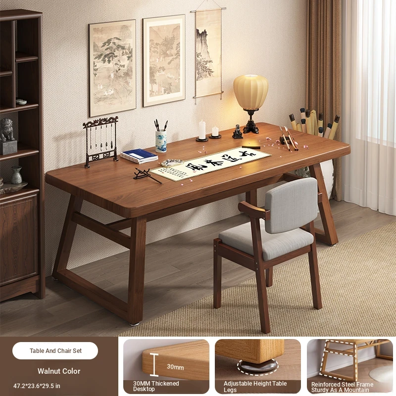 Elegant New Chinese Style Calligraphy Desk Set - Long Writing Table with Chair for Artistic Practice, Ideal for Living Room, Featuring Traditional Chinese Aesthetics and Quality Craftsmanship. Perfect for Calligraphy, Drawing, and Study.