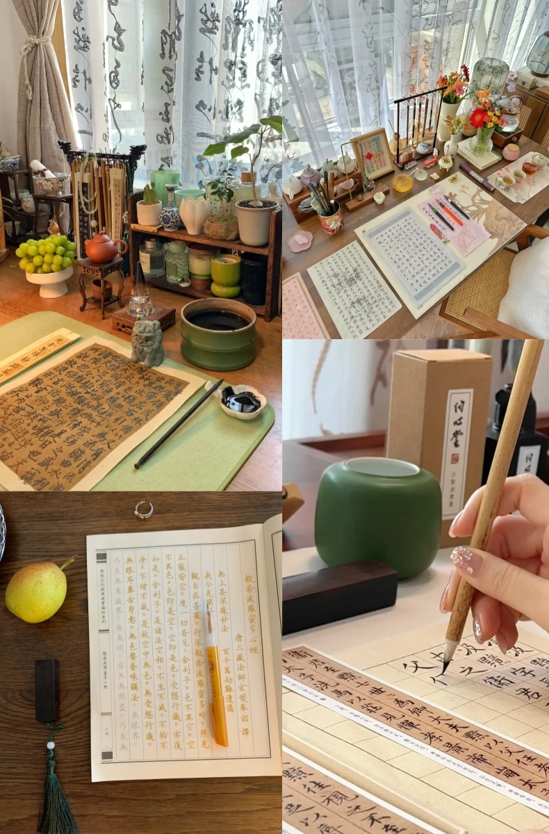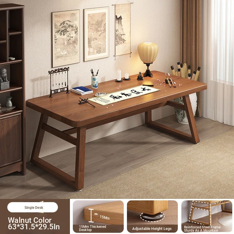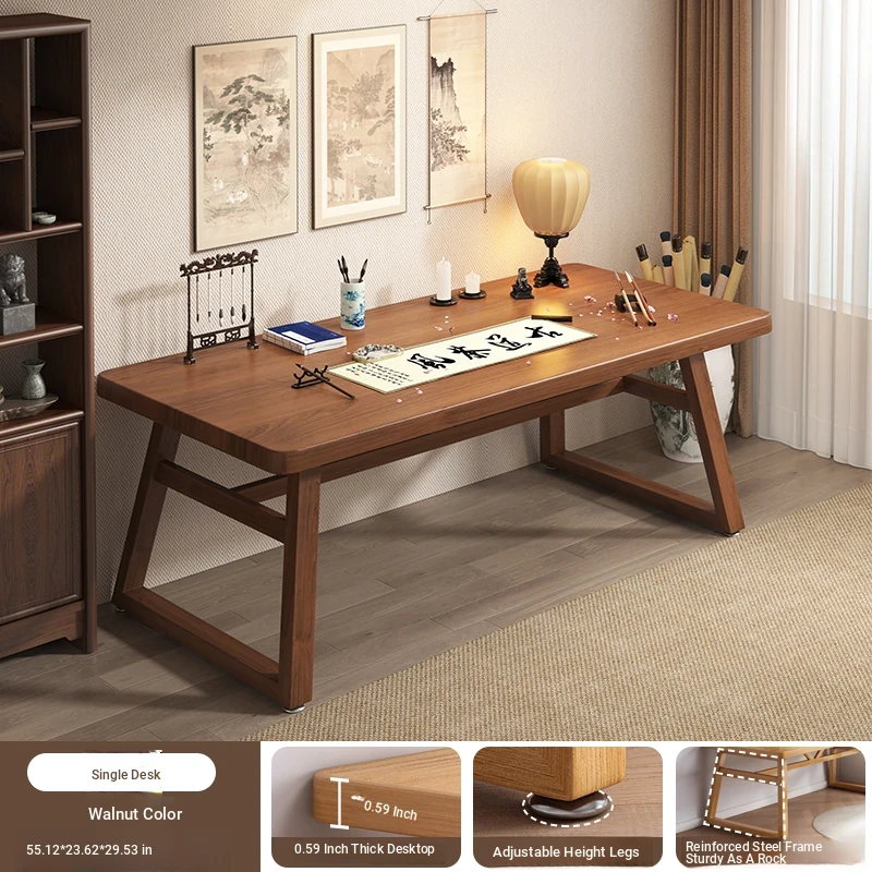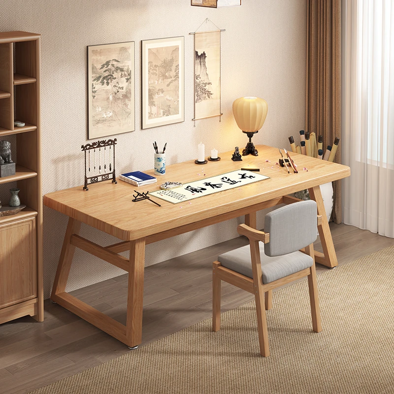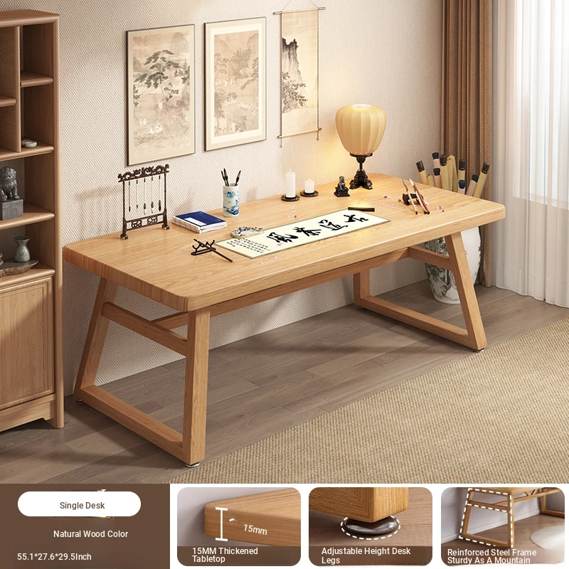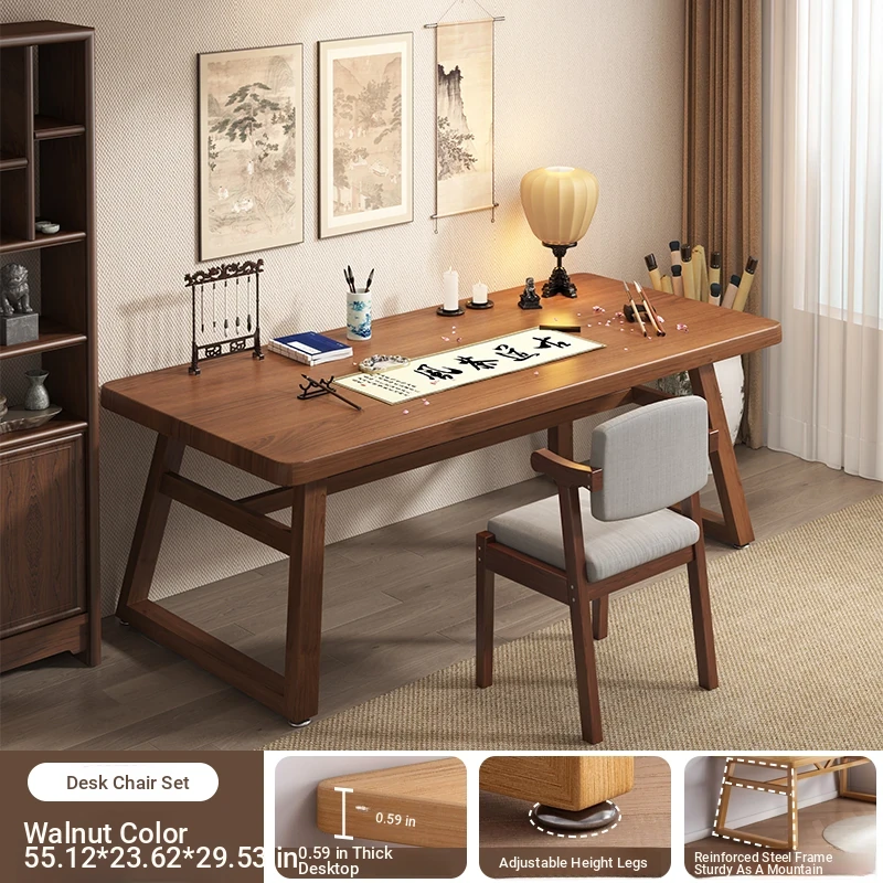 Elegant New Chinese Style Calligraphy Desk Set - Long Writing Table with Chair for Artistic Practice, Ideal for Living Room, Featuring Traditional Chinese Aesthetics and Quality Craftsmanship. Perfect for Calligraphy, Drawing, and Study.