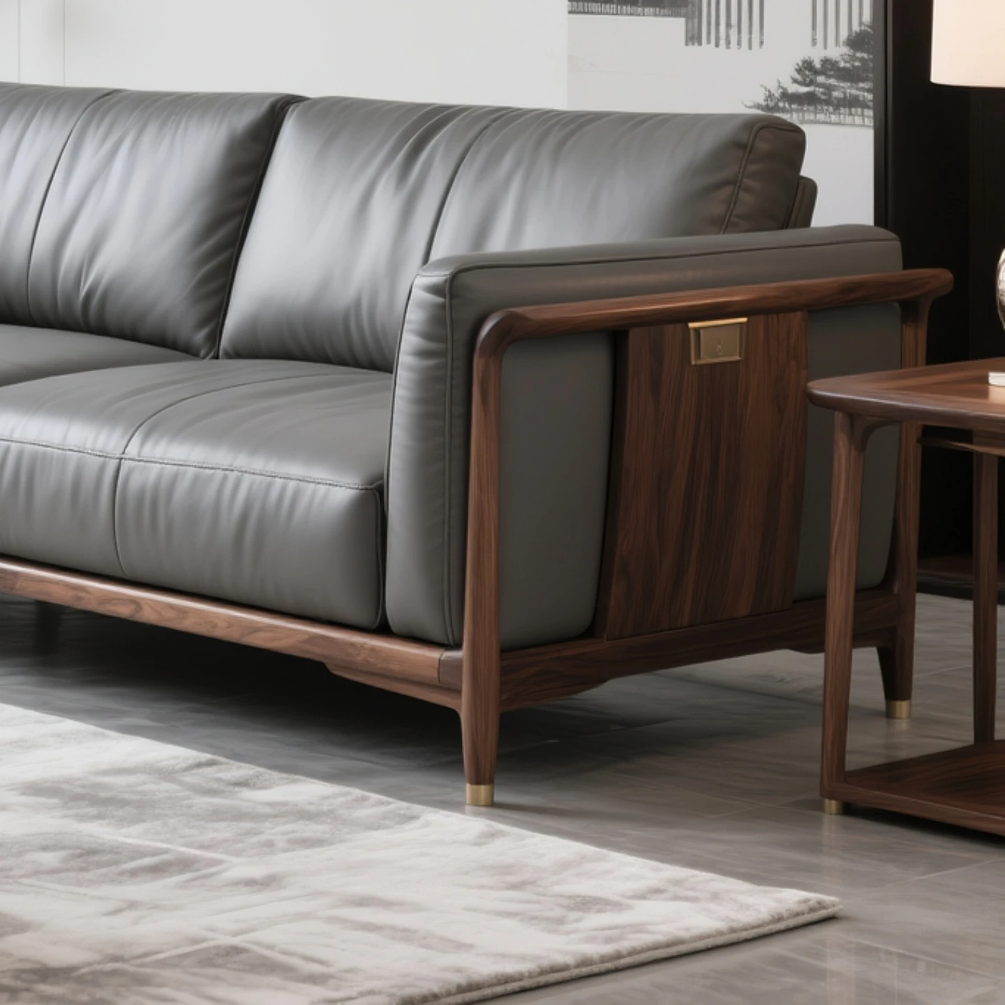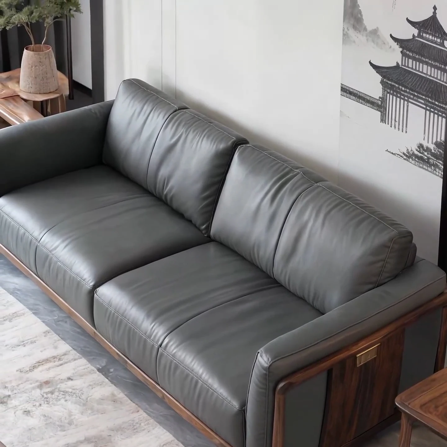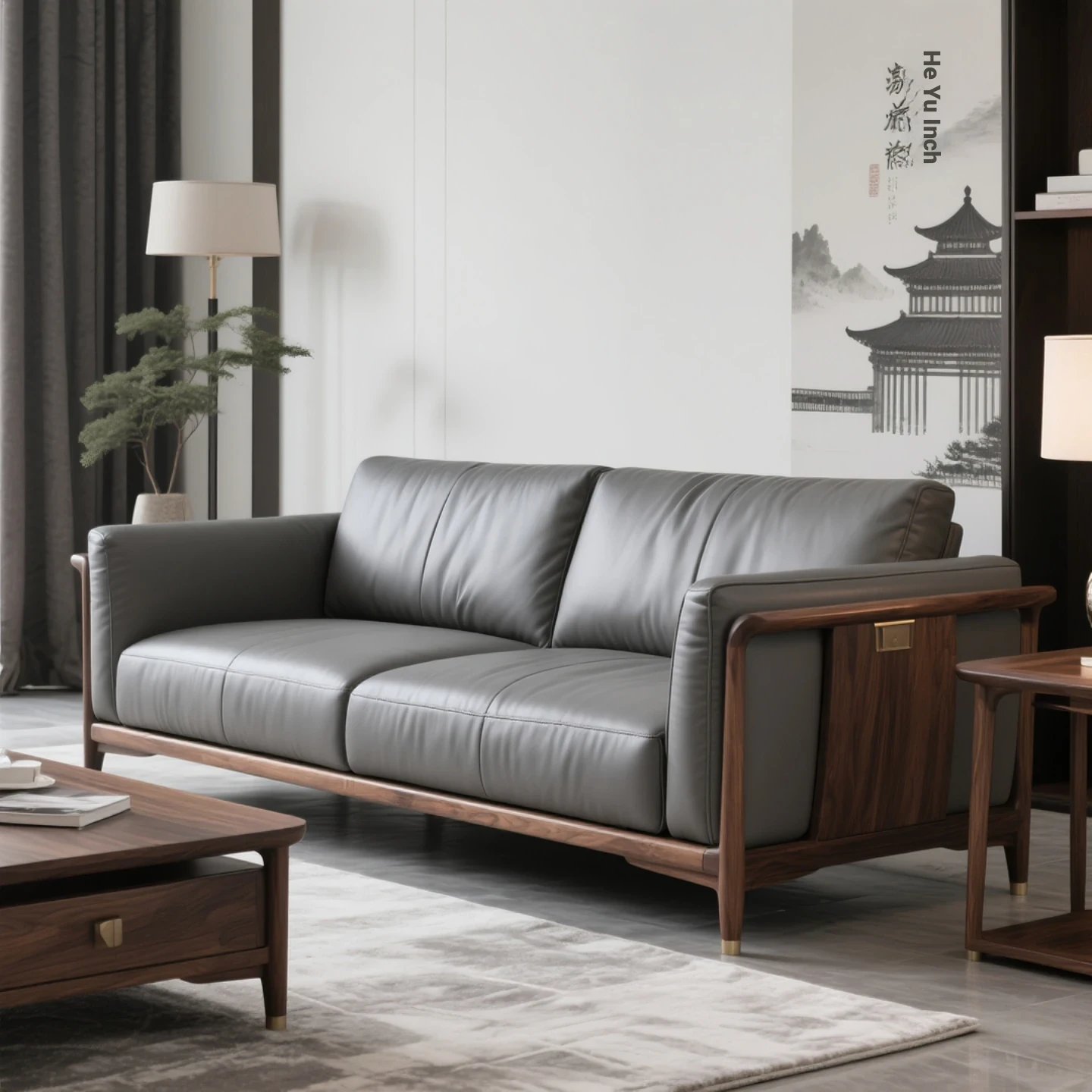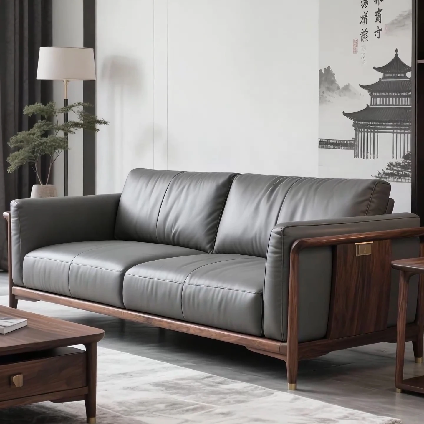 Elegant New Chinese Style North American Black Walnut Sofa - Song Aesthetic Design for Office and Villa, Perfect for Wabi-Sabi Inspired Show Homes
