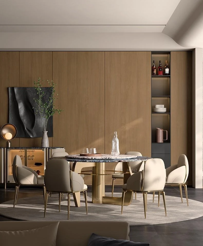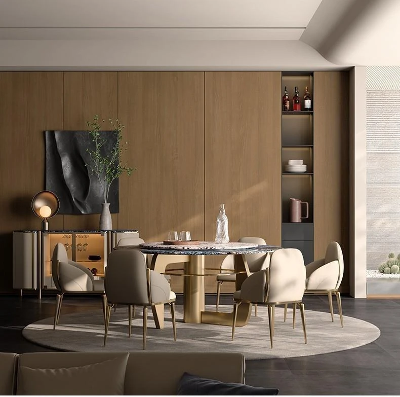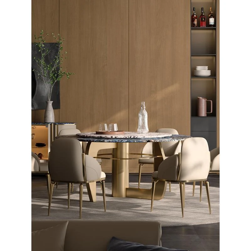 Elegant Round Natural Marble Dining Table with Rotating Tray - Perfect for Luxury Villas and Spacious Apartments, Exuding Sophistication and Style