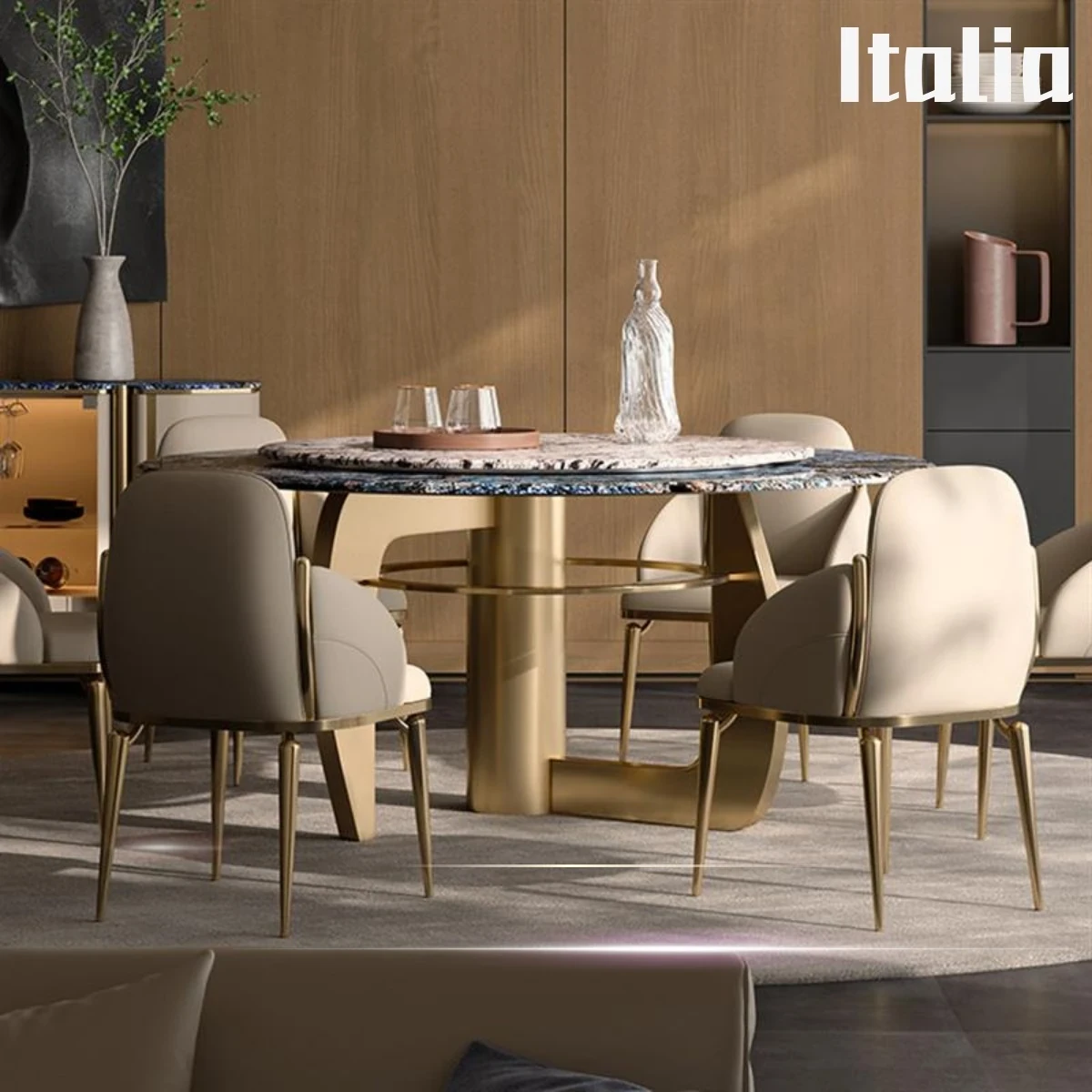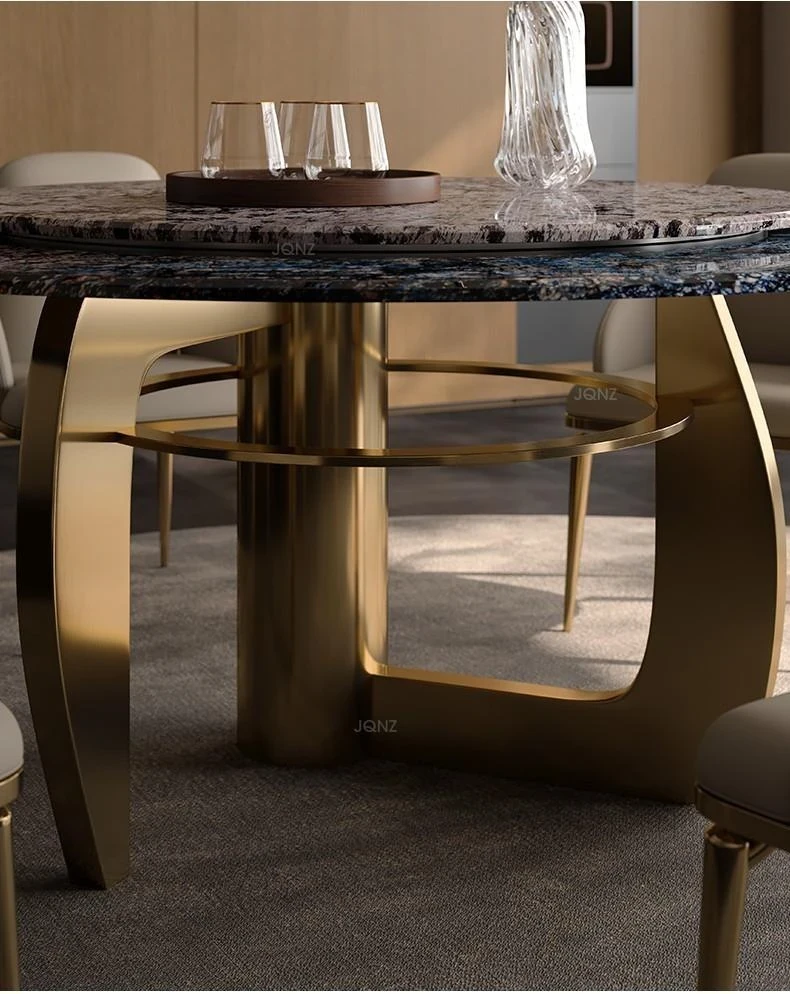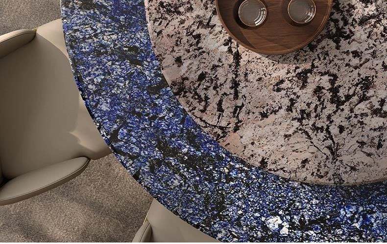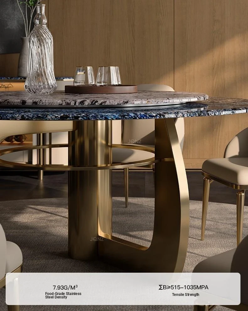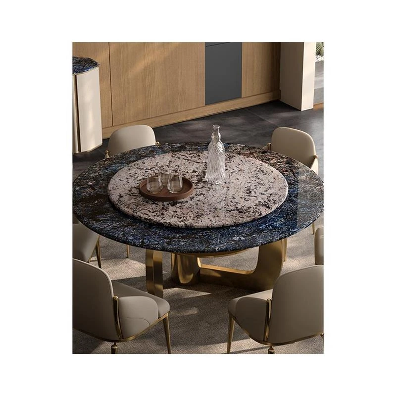 Round Table/78.74in/Bolivia Blue/Tianshan Twilight Snow Turntable/Champagne Gold