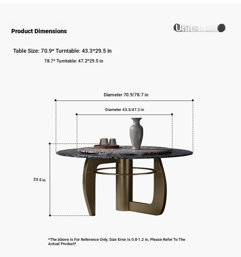 Round Table/70.87in/Bolivia Blue/Tianshan Twilight Snow Turntable/Champagne Gold