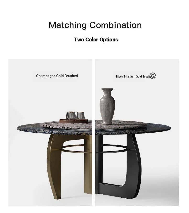 Round Table/70.87in/West Africa Ebony + Tianshan Twilight Snow Turntable/Champagne Gold