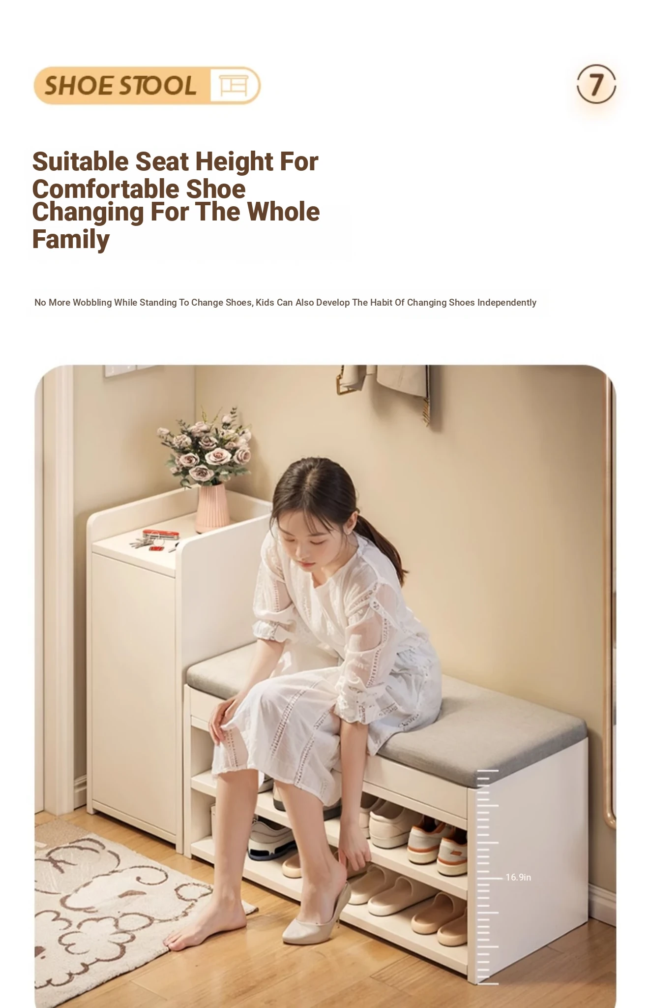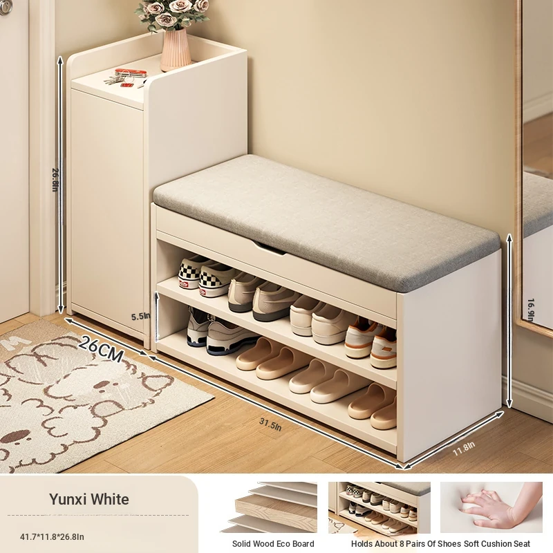[Vertical Cabinet & Matching Shoe Changing Stool] Yunxi Cedar White 10.24in*11.81in*26.77in (thickened Solid Wood Ecological Board)