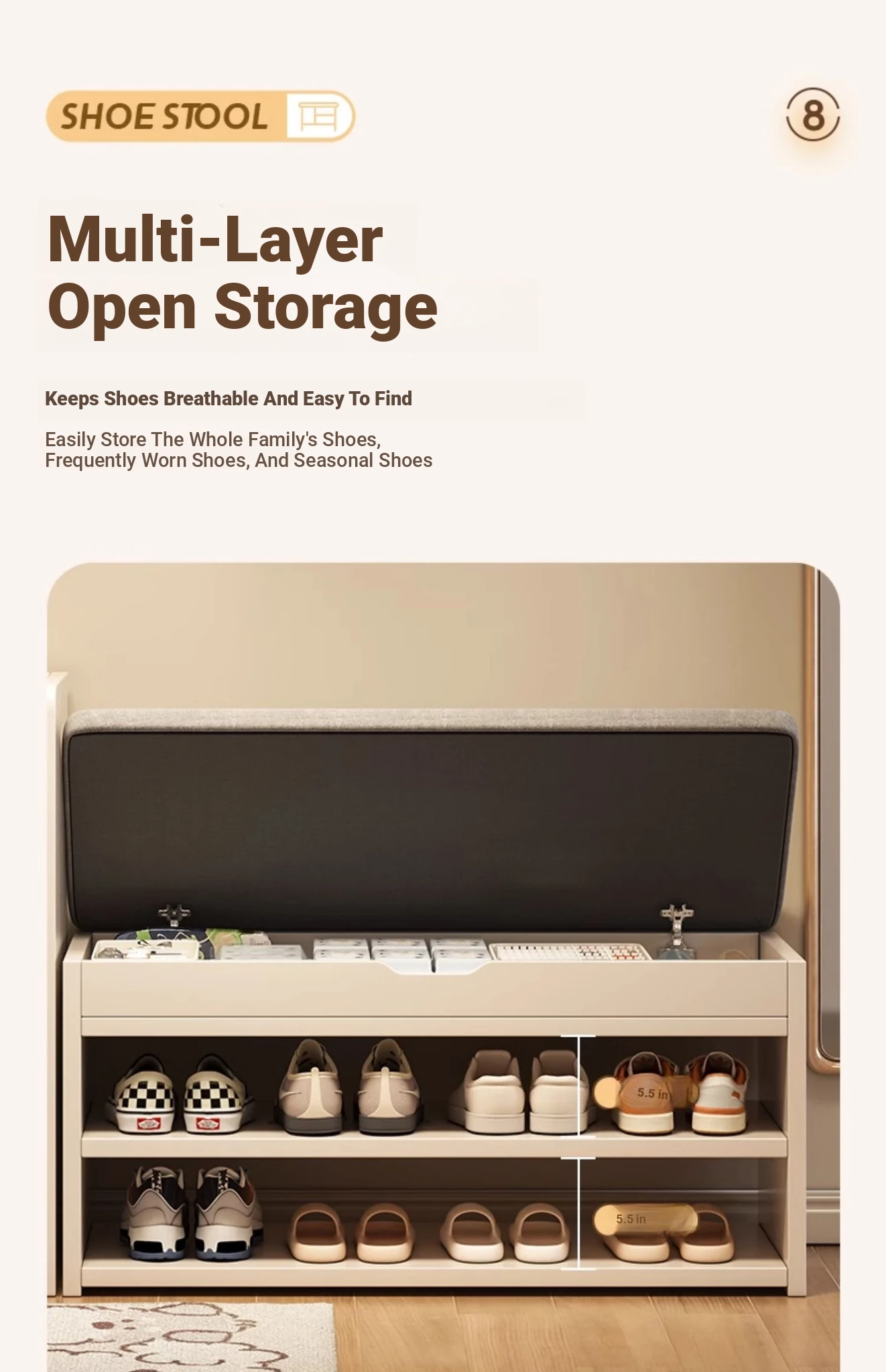 Entryway Shoe Bench with Storage - Versatile Shoe Rack and Sitting Stool Combined for Home Use, Perfect for Hallway and Doorway - Ideal for Changing Shoes Comfortably
