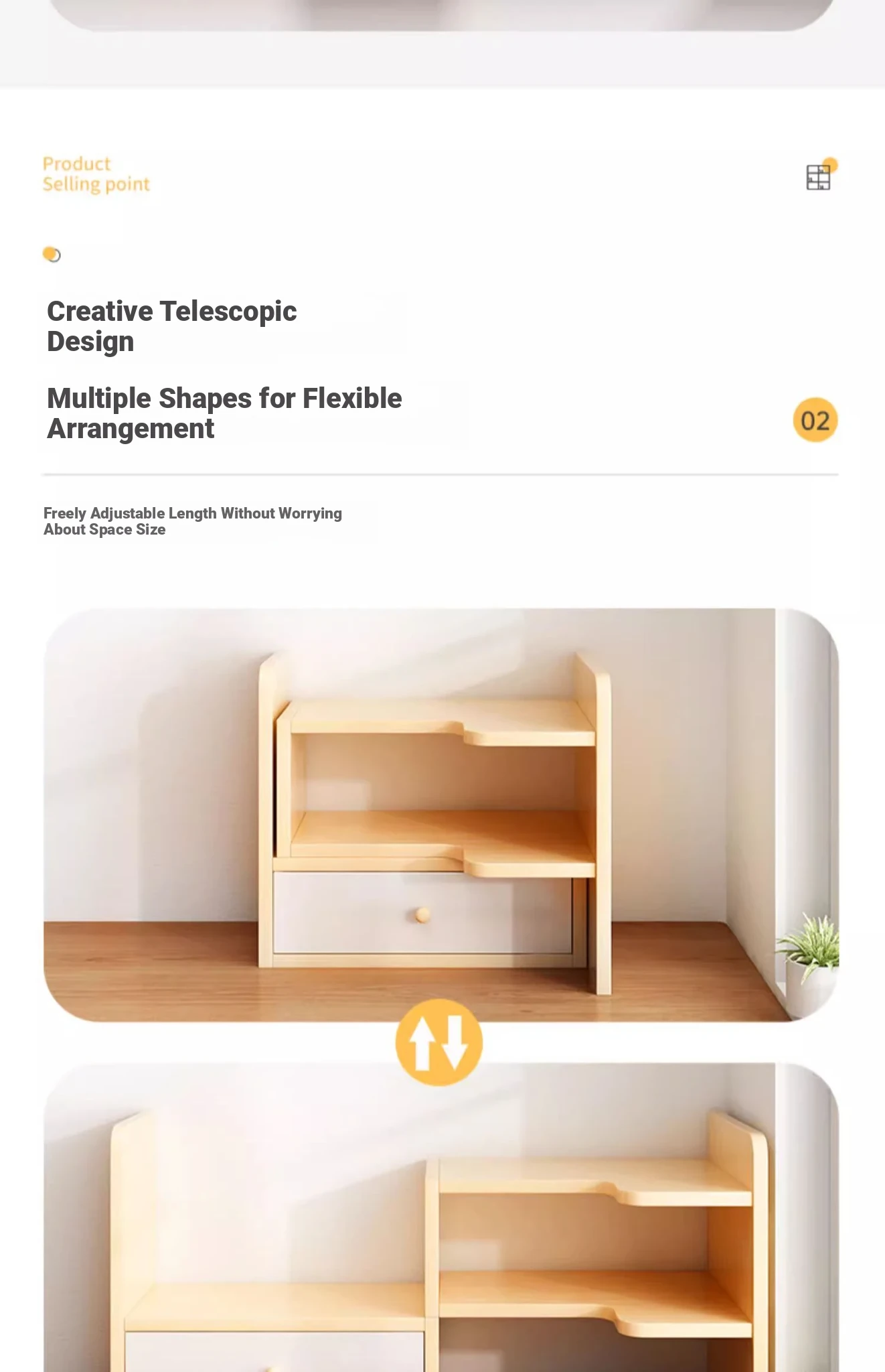 [Corner on the right] retractable 11.81in-23.62in Oak color