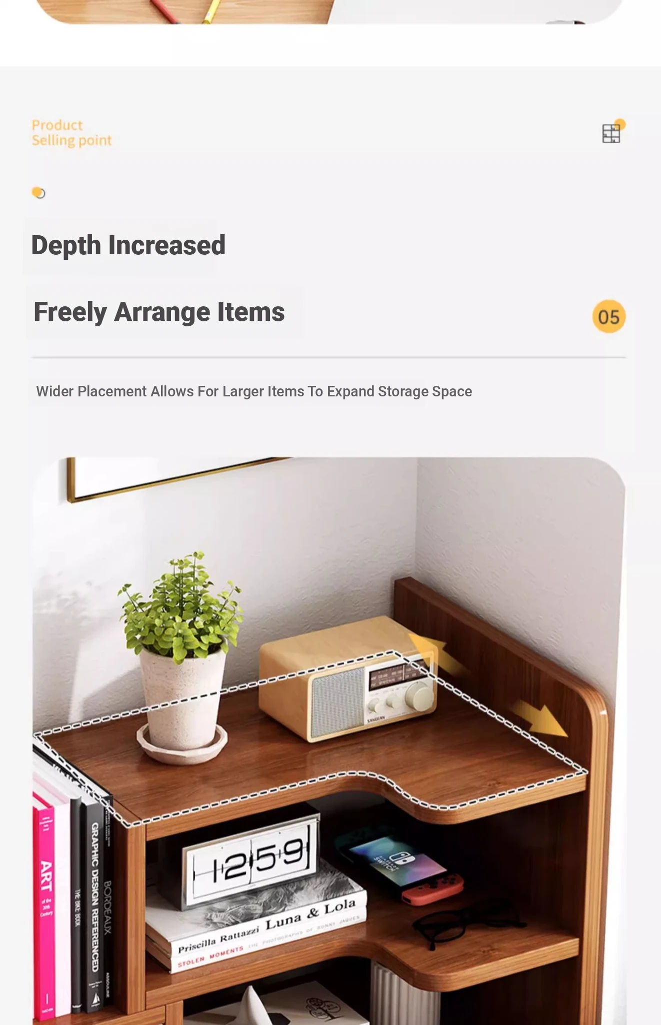 [Corner on the left] retractable 11.81in-23.62in Oak color