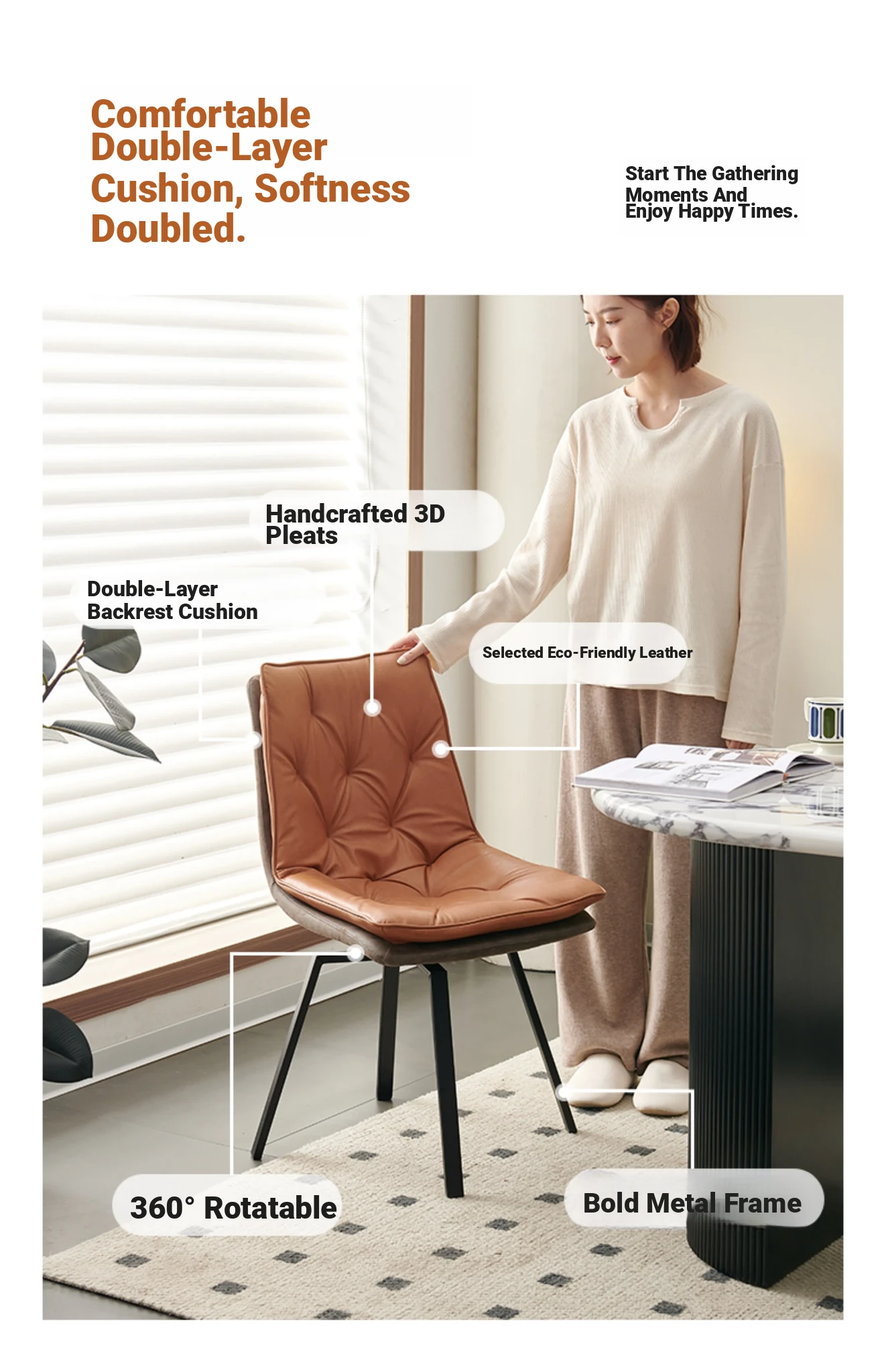 Double-decker Dining Chair Orange Double-Rotate In Stock