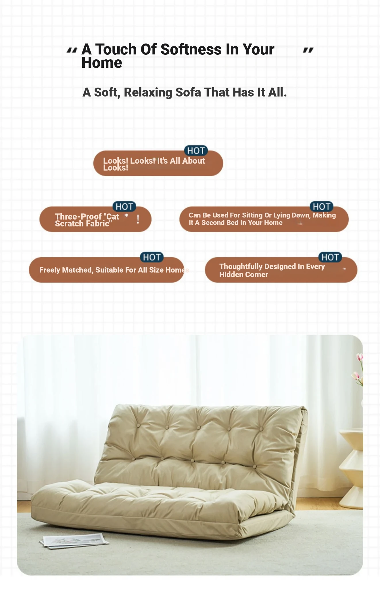 Foldable Lazy Cloud Sofa - Comfortable Two-Person Floor Chair for Relaxation and Sleep, Ideal for Bedrooms and Tatami Use