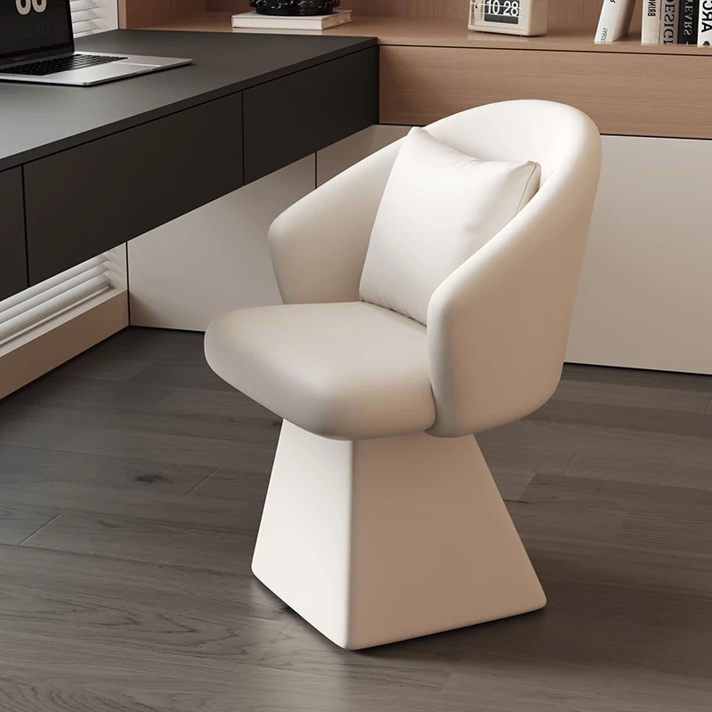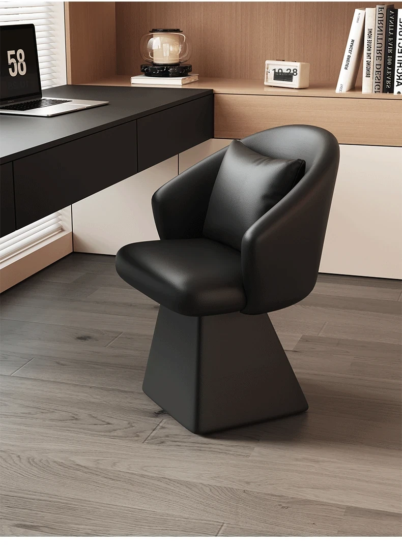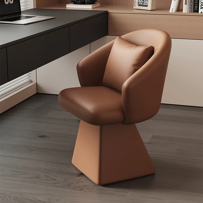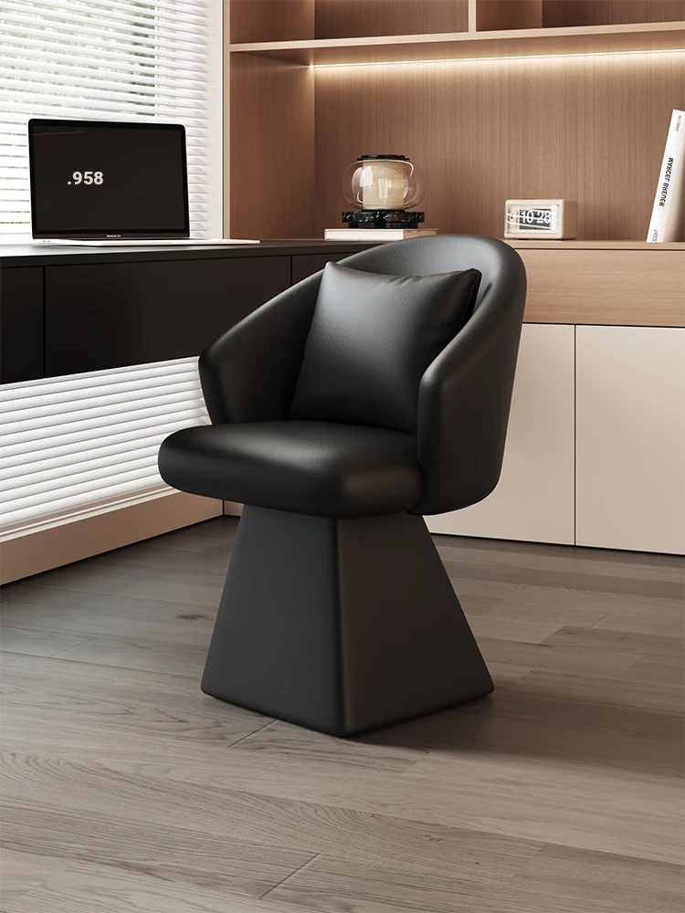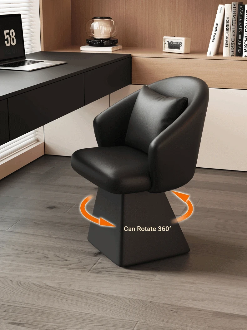 Genuine Leather Rotating Makeup Stool - Versatile Home Dining Chair for Women, Ideal for Bedroom Vanities, Makeup Stations, and Nail Art; Stylish Chair with Backrest for Ultimate Comfort