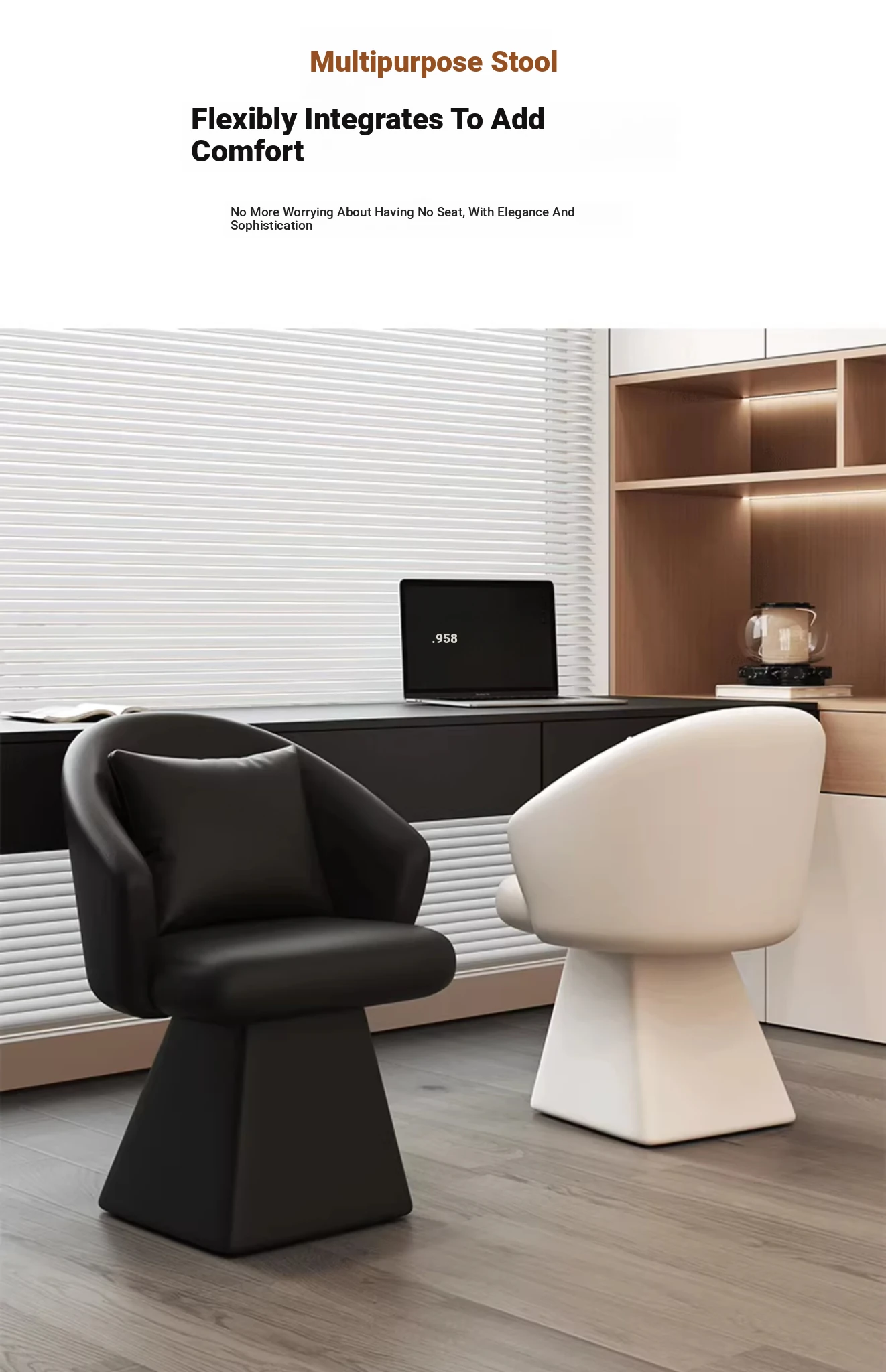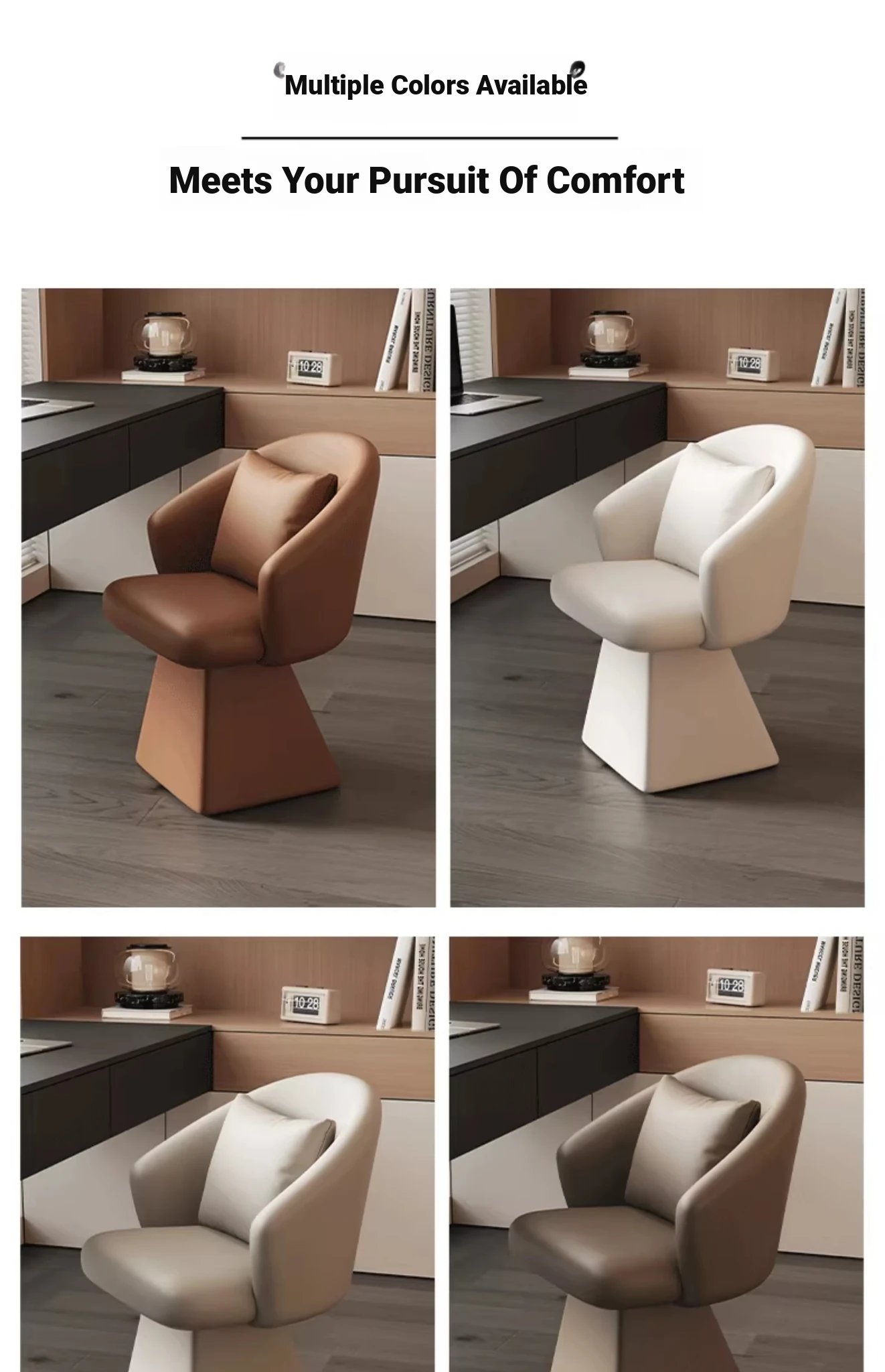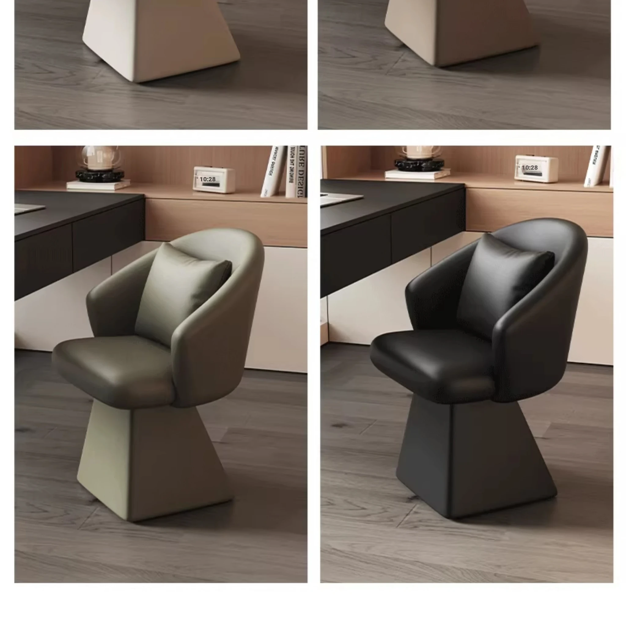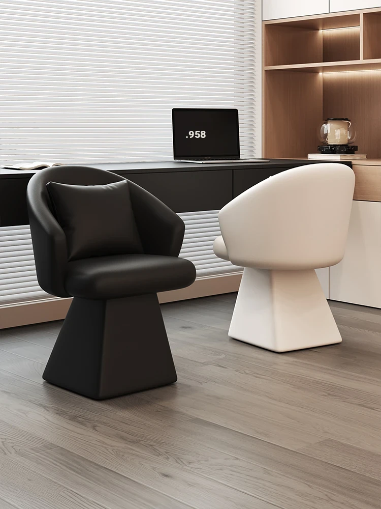 Genuine Leather Rotating Makeup Stool - Versatile Home Dining Chair for Women, Ideal for Bedroom Vanities, Makeup Stations, and Nail Art; Stylish Chair with Backrest for Ultimate Comfort