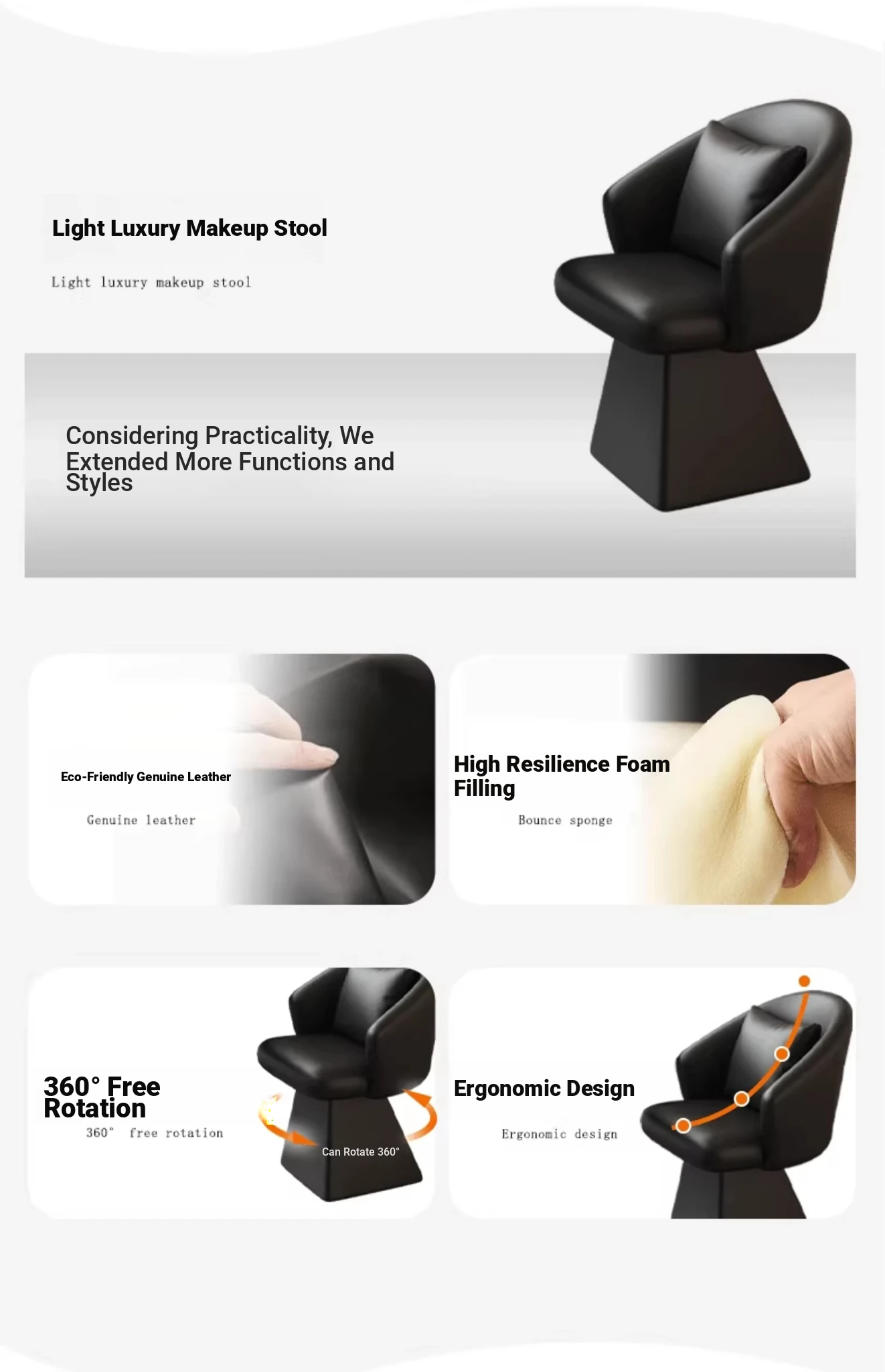 Black ecological leather [360 degree Rotate + Send a pillow of the same color]]
