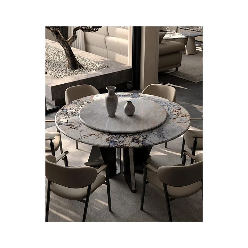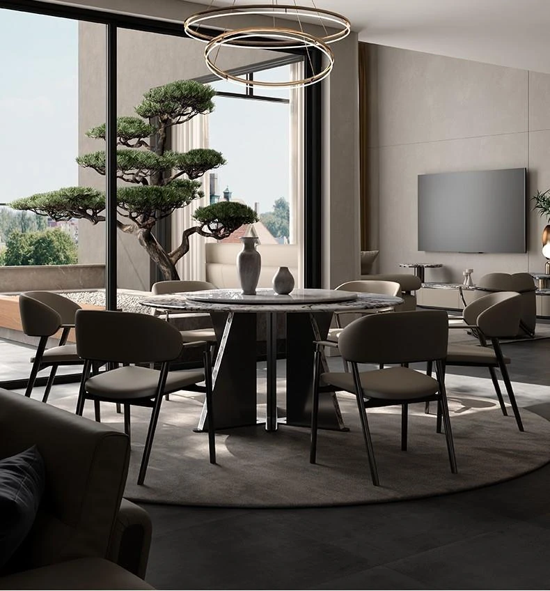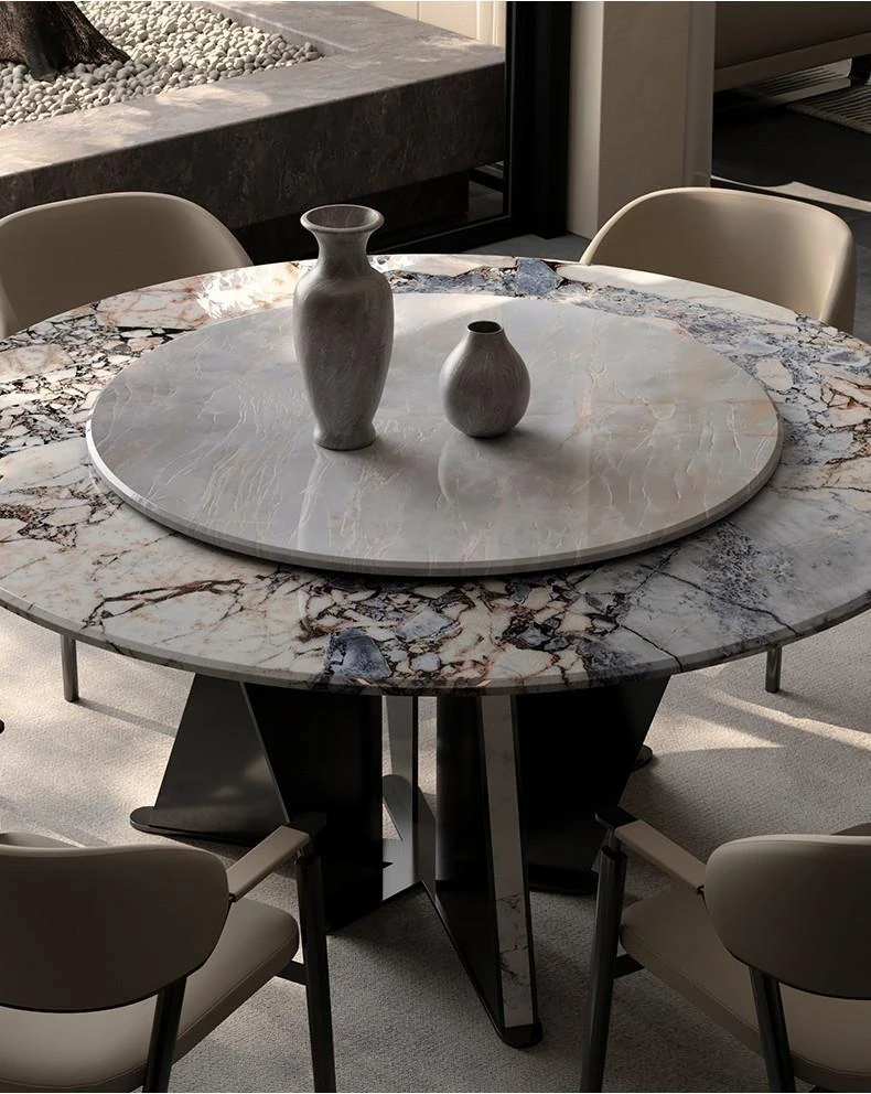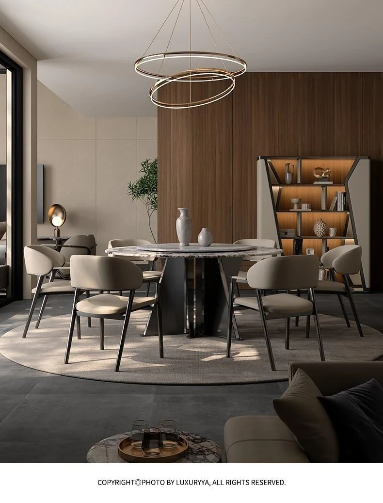 Italian Luxury Round Dining Table and Chair Set - Modern Minimalist Home Furniture for Spacious Living, Premium Marble Dining Table for Elegant Dining Experiences.