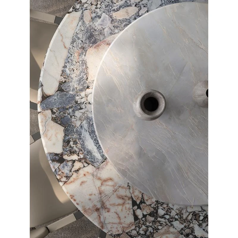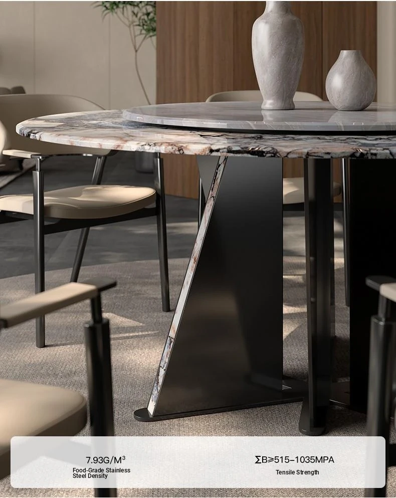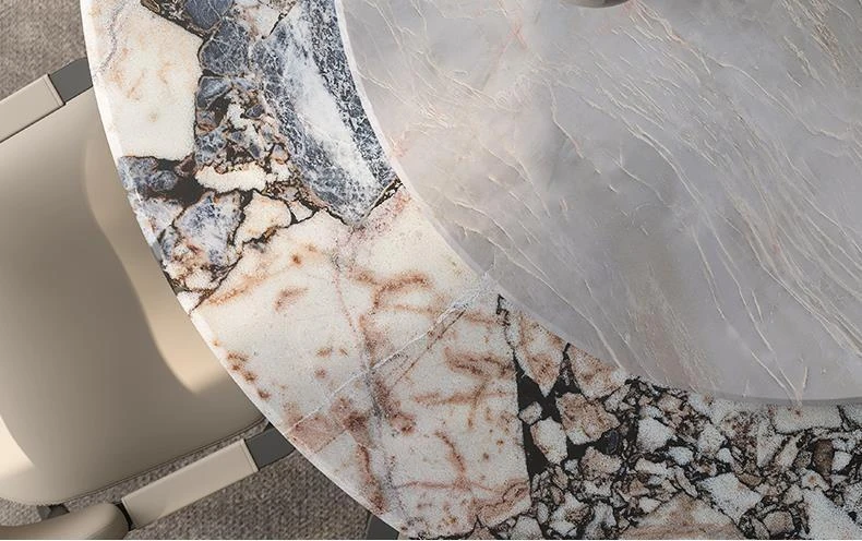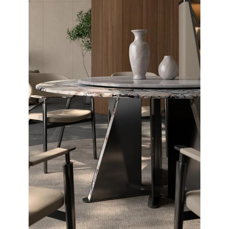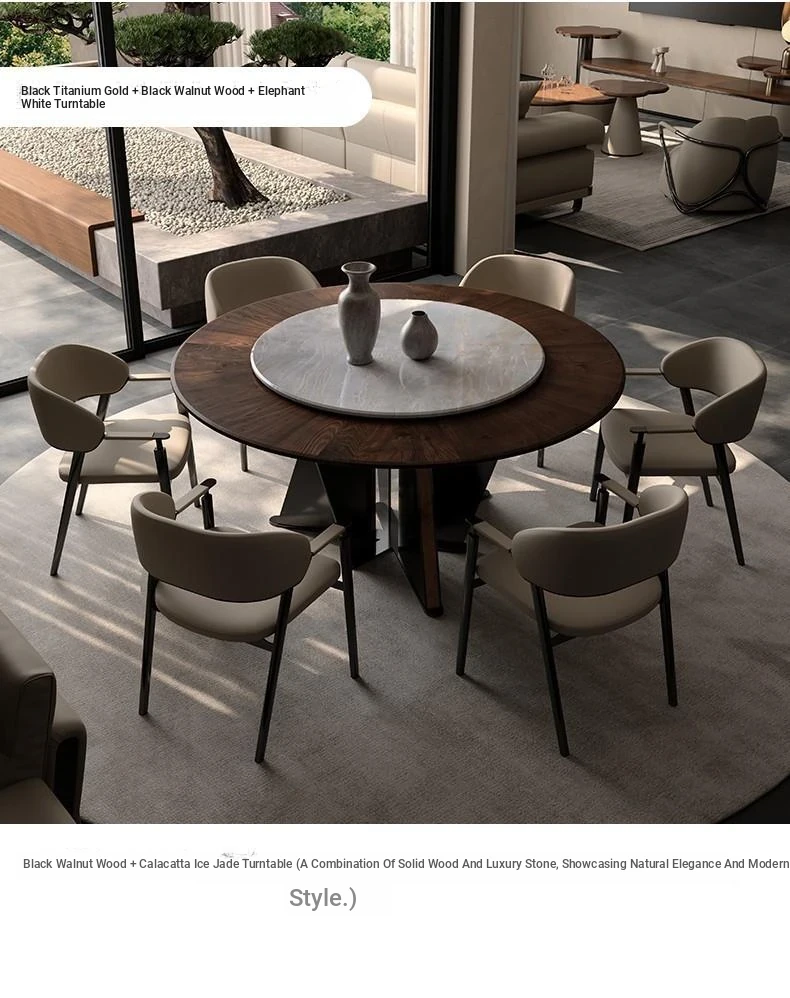 Italian Luxury Round Dining Table and Chair Set - Modern Minimalist Home Furniture for Spacious Living, Premium Marble Dining Table for Elegant Dining Experiences.