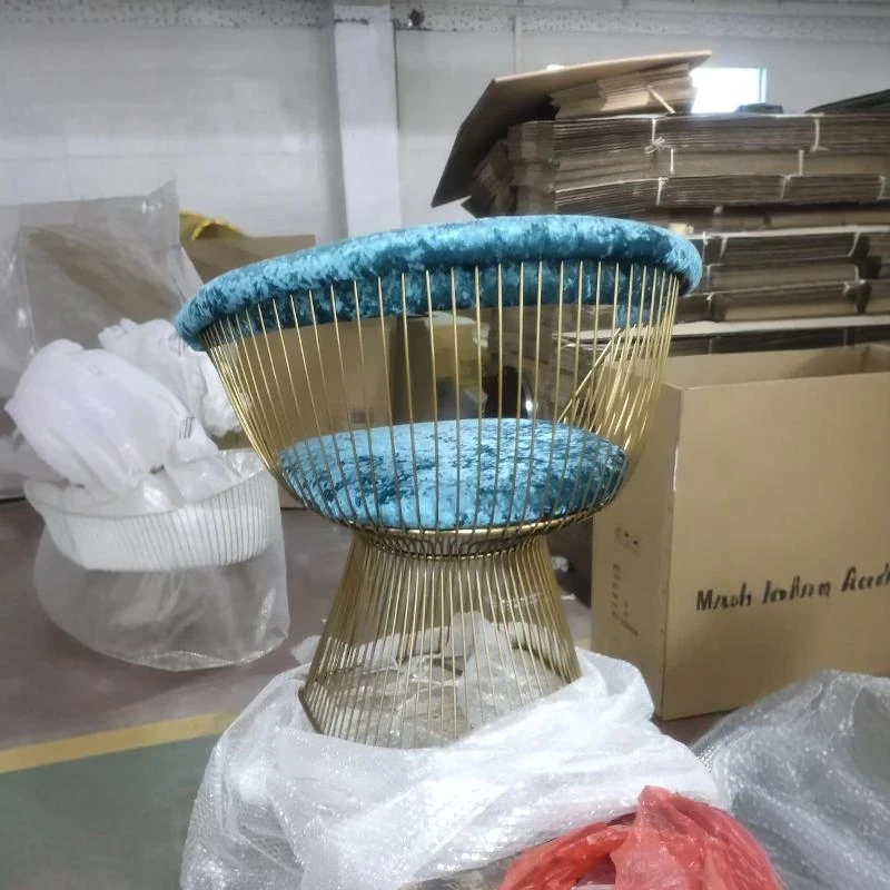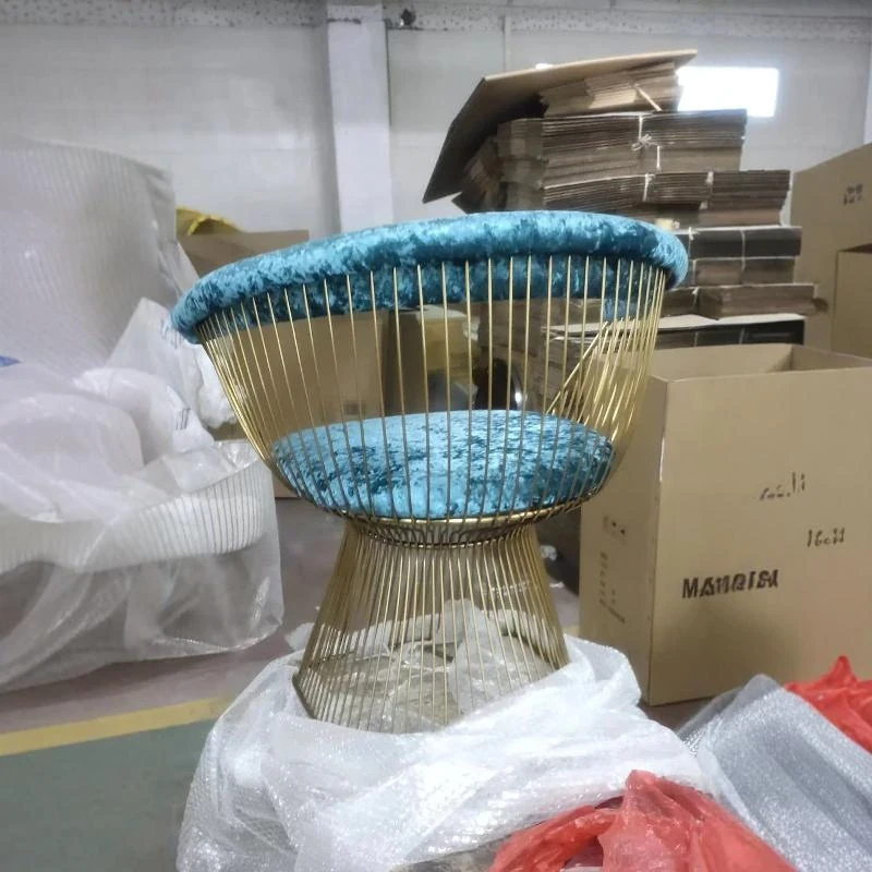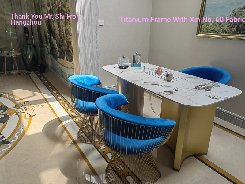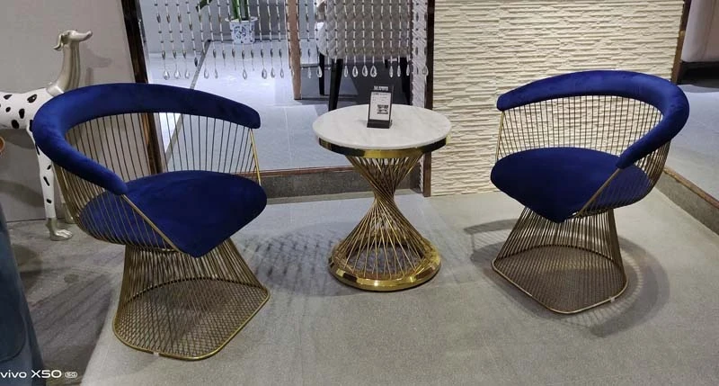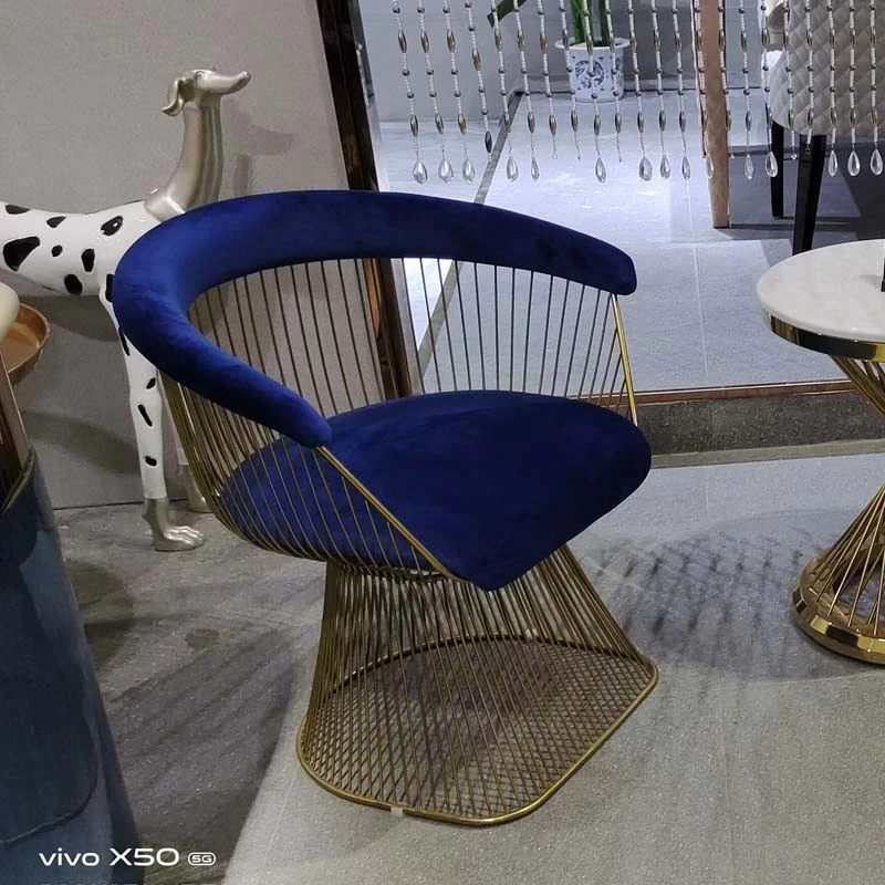 Titanium gold frame + blue velvet fabric