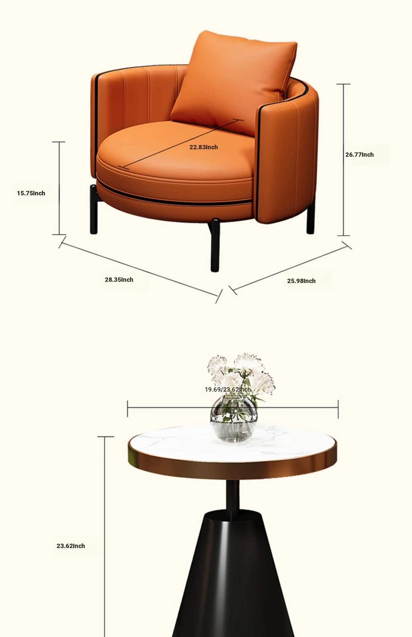 Orange (one table and two chairs) desktop 23.62in (high quality thickened cat claw skin)